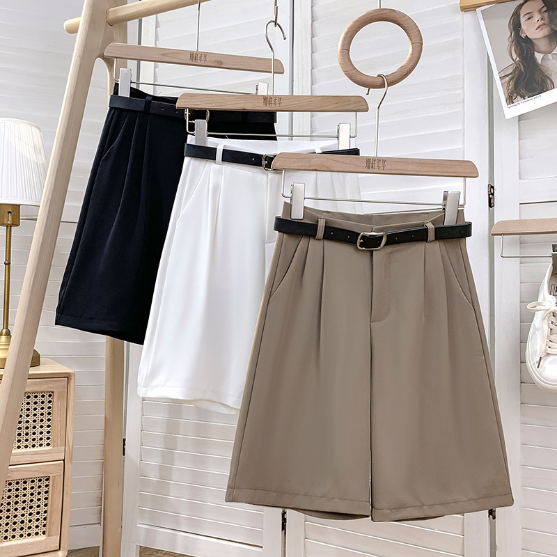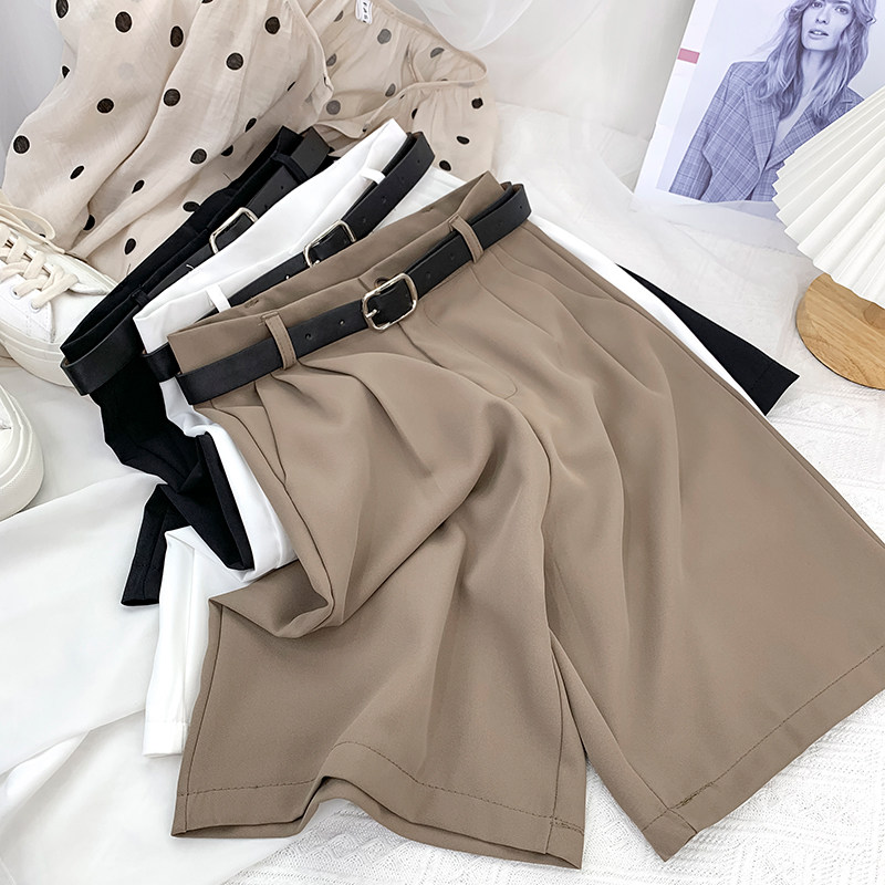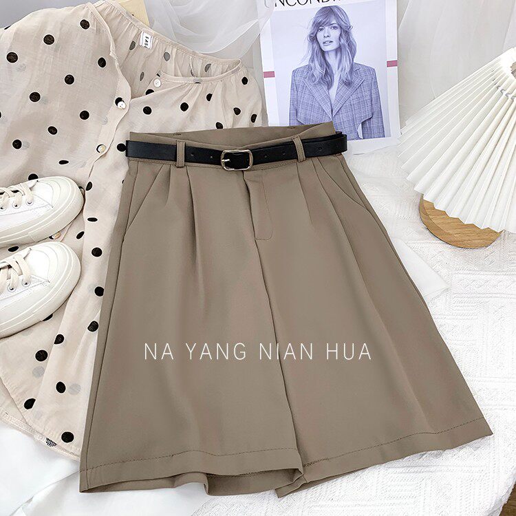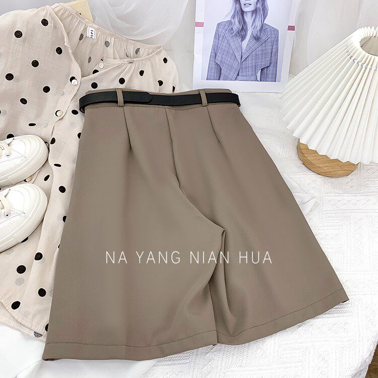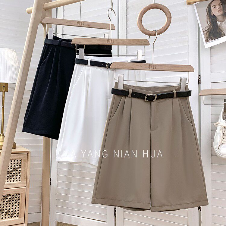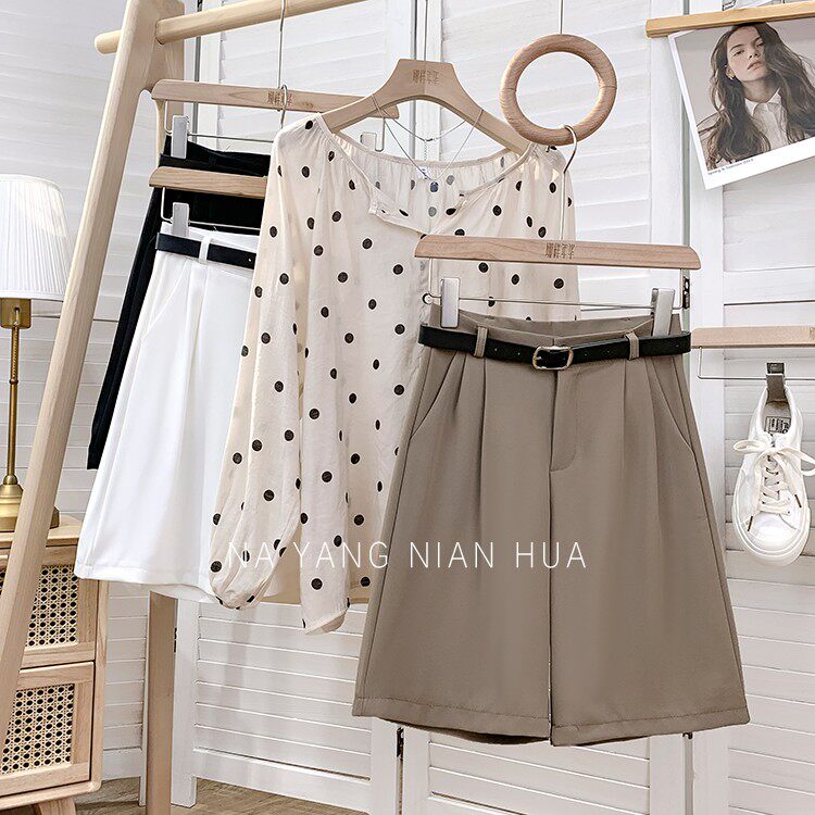 Шелковый костюм, шорты, шифоновые японские штаны, высокая талия, свободный прямой крой