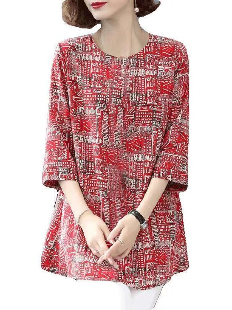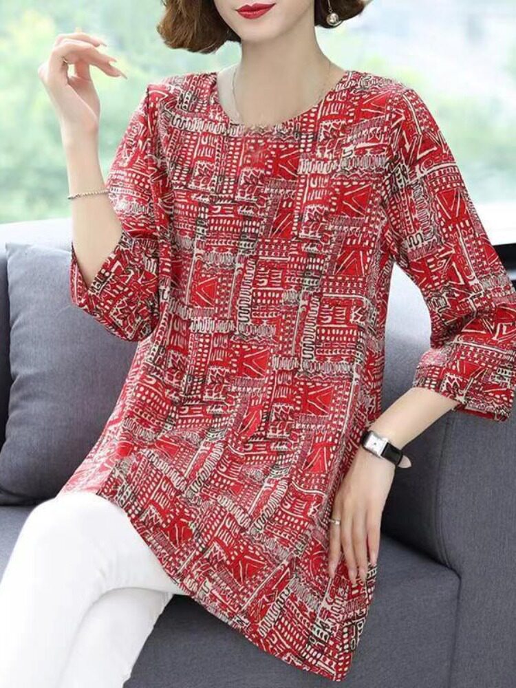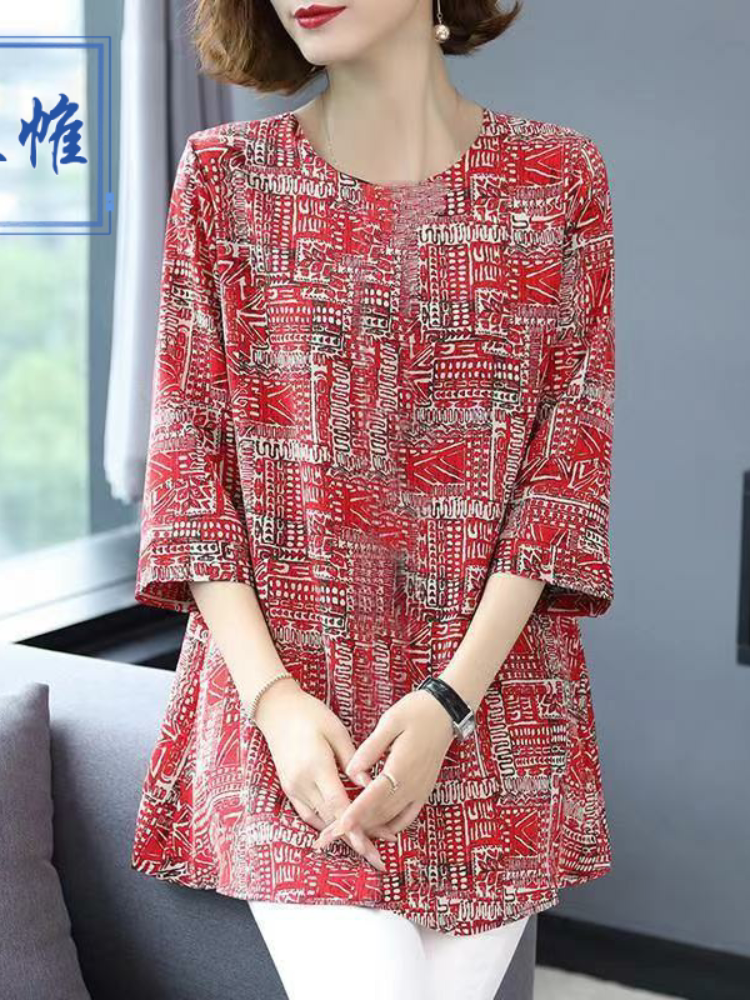 Шелковая ткань для матери, рубашка, для среднего возраста, коллекция 2023, большой размер, свободный крой