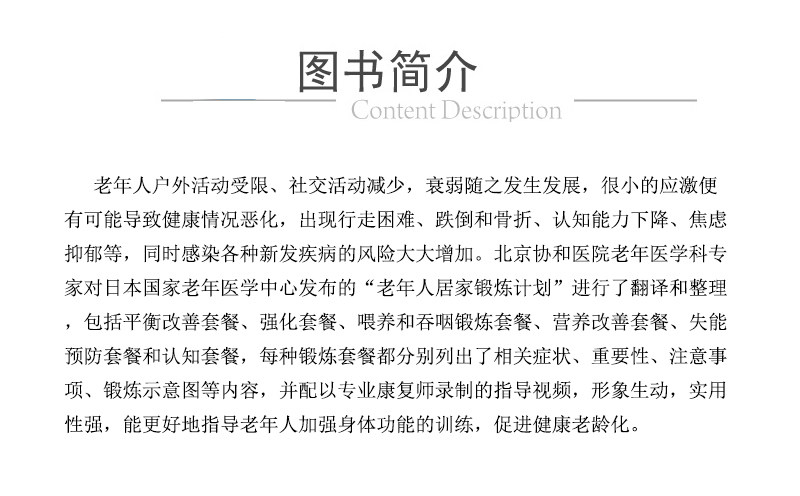 Поскольку деятельность пожилых людей на свежем воздухе значительно ограничена, число пожилых людей, испытывающих снижение жизненных способностей, когнитивных функций и физических функций, может увеличиться, а предоставление медицинских и медицинских услуг, таких как реабилитация, станет более трудным.Когда социальная активность пожилых людей снижается, развивается слабость, а небольшой стресс может привести к ухудшению состояния здоровья, затруднениям при ходьбе, падениям и переломам, снижению когнитивных функций, тревоге и депрессии, а также повышенному риску различных новых заболеваний.Чтобы избежать этой серии падений домино, крайне важно, когда это возможно, выполнять упражнения на задержку движения дома.Национальный центр гериатрии Японии опубликовал руководство по домашним упражнениям — «Программу домашних упражнений для пожилых людей на 2020 год».Пожилые люди могут выполнять действия и упражнения дома в соответствии со своими индивидуальными условиями, чтобы их физические и умственные функции не были ослаблены.Помимо подробного описания различных типов активных упражнений, в нем также представлена блок-схема, позволяющая облегчить обследование пожилых людей и оценить, какой метод упражнений наиболее подходит.В этой книге в основном представлены семь аспектов: блок-схема HEPOP, пакет упражнений по кормлению и глотанию, пакет по улучшению питания, когнитивный пакет, пакет по улучшению баланса, пакет по укреплению и пакет по предотвращению инвалидности. В каждом пакете упражнений перечислены соответствующие симптомы, важность, меры предосторожности, схемы упражнений и т. д., а также сопровождается QR-код для видео операции, которое является ярким и практичным и может лучше помочь пожилым людям понять и выполнять упражнения.