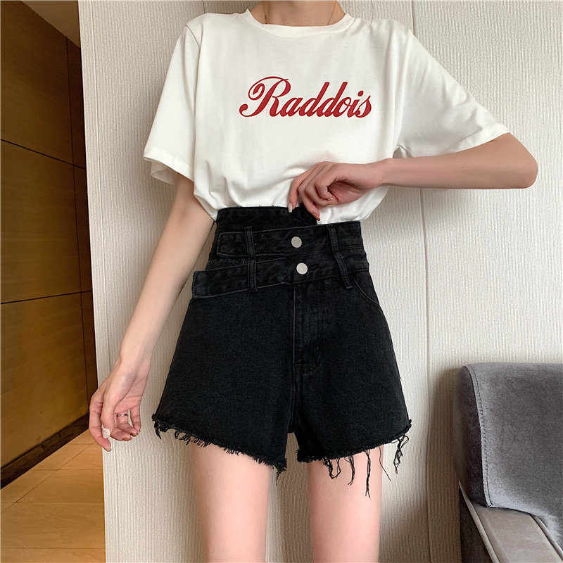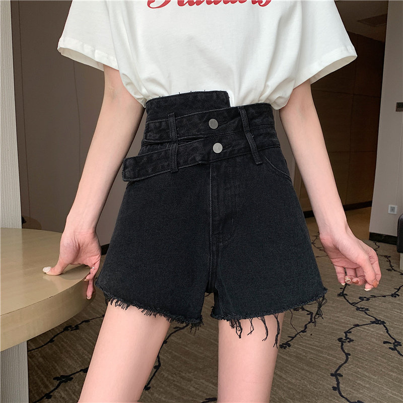 Дизайнерская черная цветная джинсовая юбка, летние шорты, штаны, большой размер, тренд сезона, высокая талия, подходит для полных девушек, свободный крой