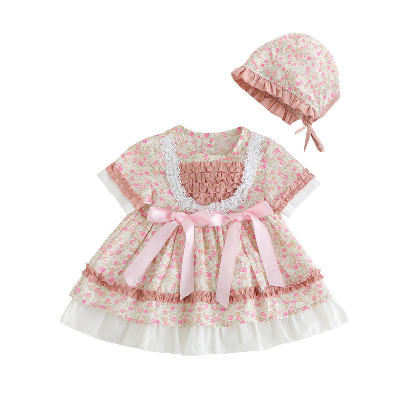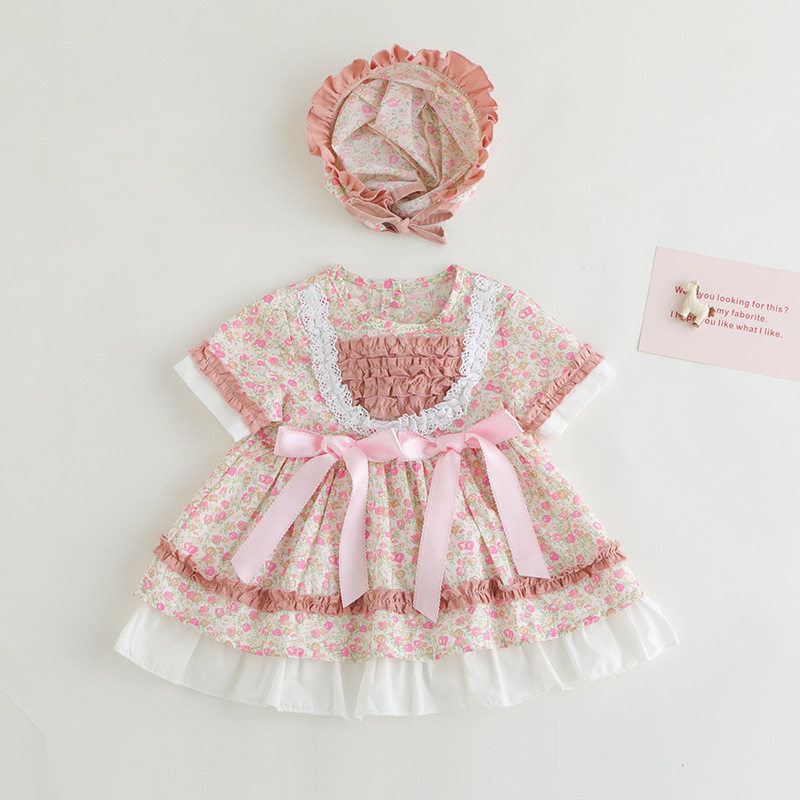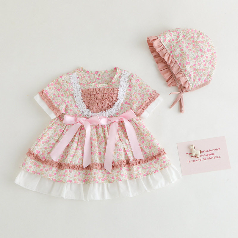 Летнее платье, детский наряд маленькой принцессы, комплект, в западном стиле, стиль Лолита, короткий рукав