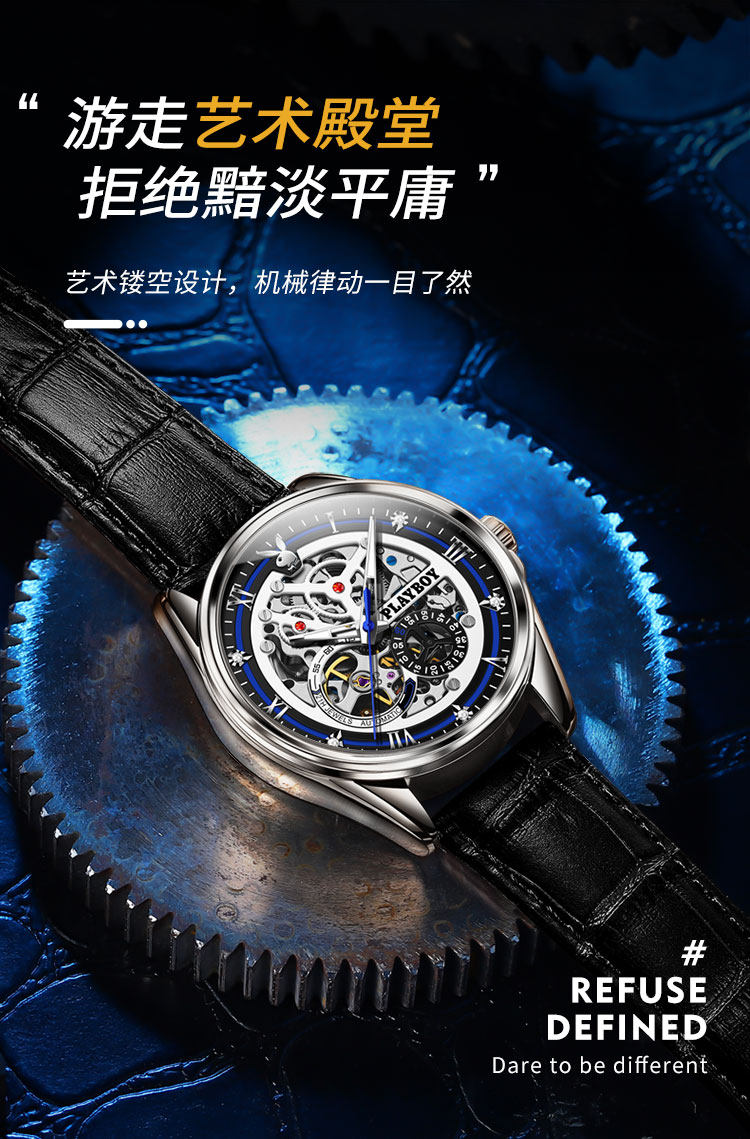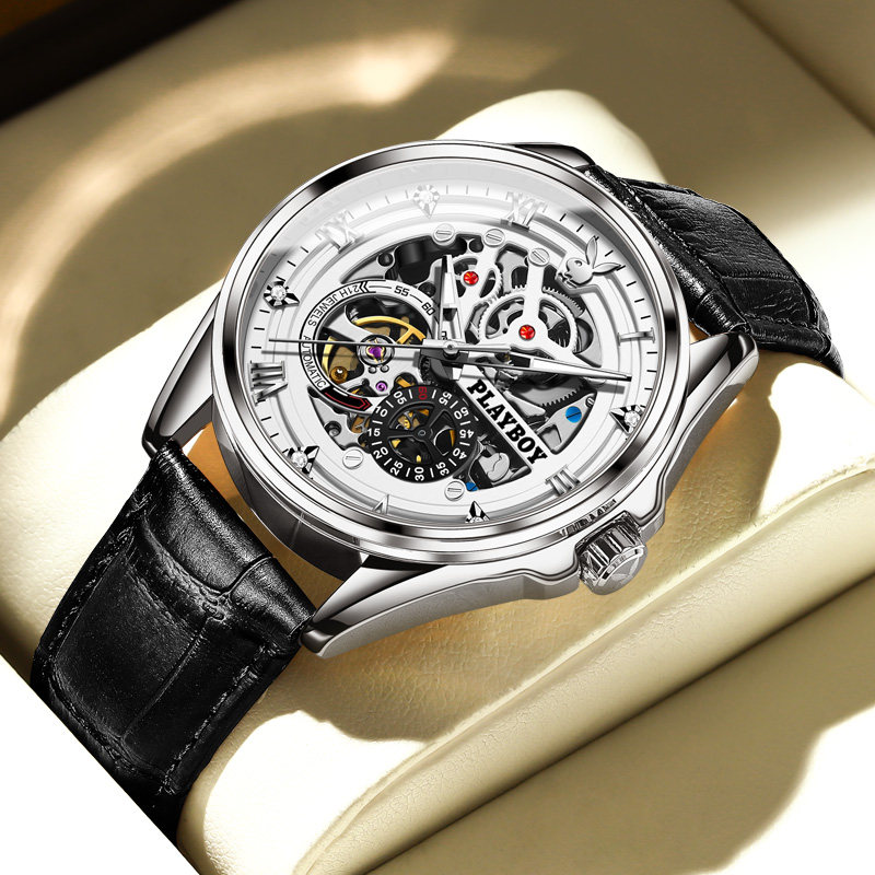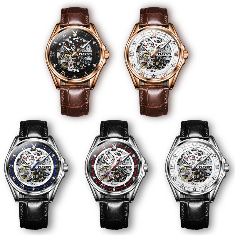 Мужские часы, механические механические часы, ремень, знаменитые часы, полностью автоматический, из натуральной кожи