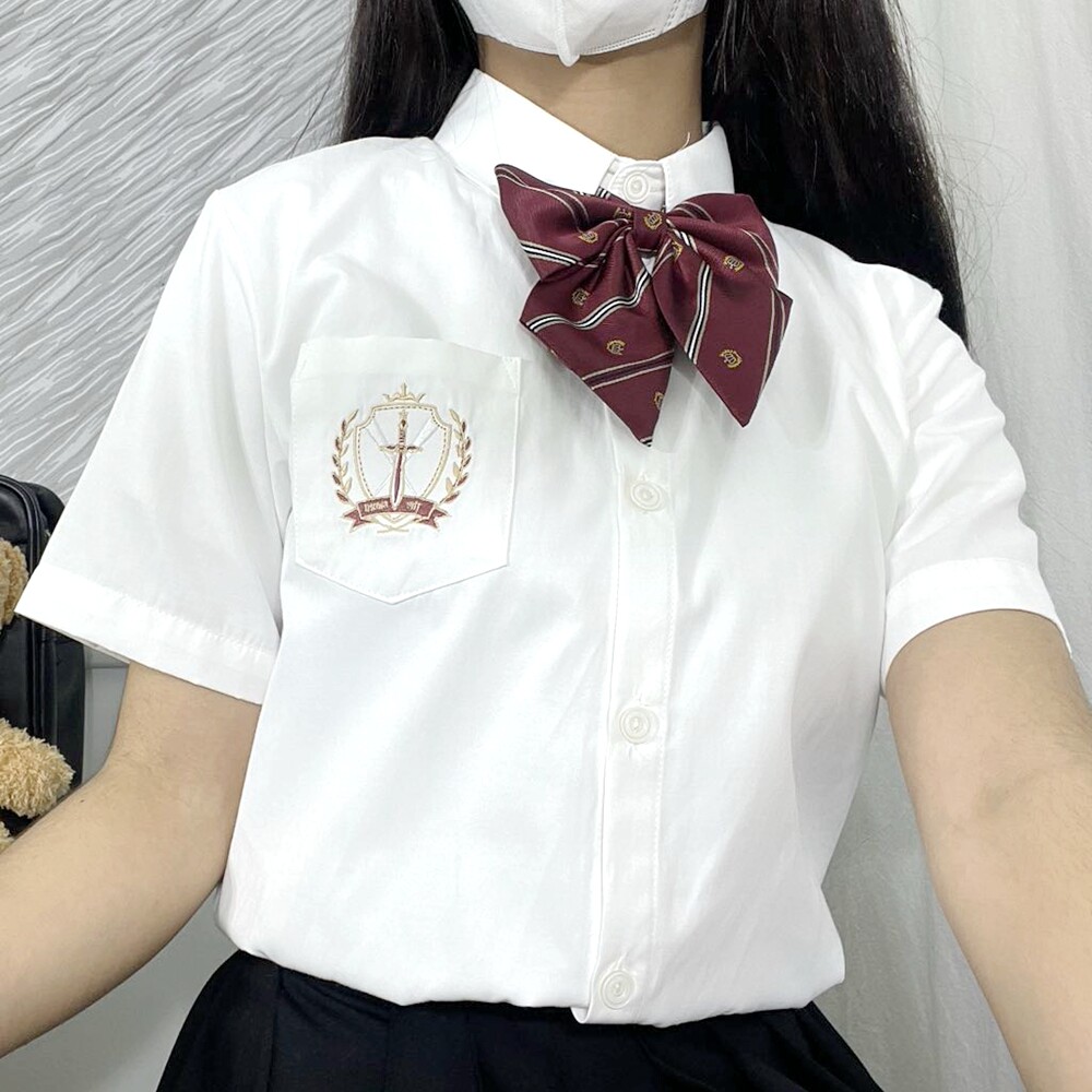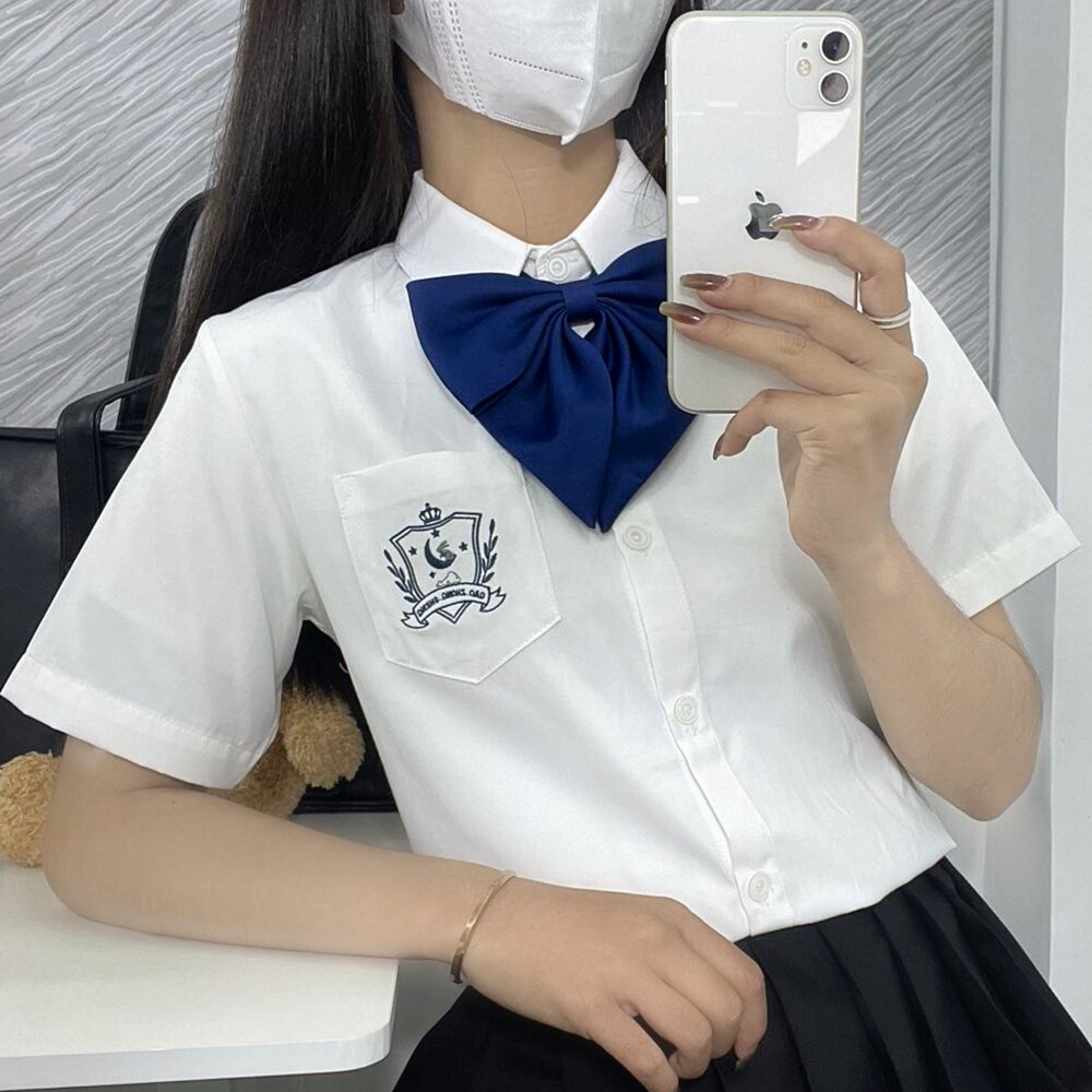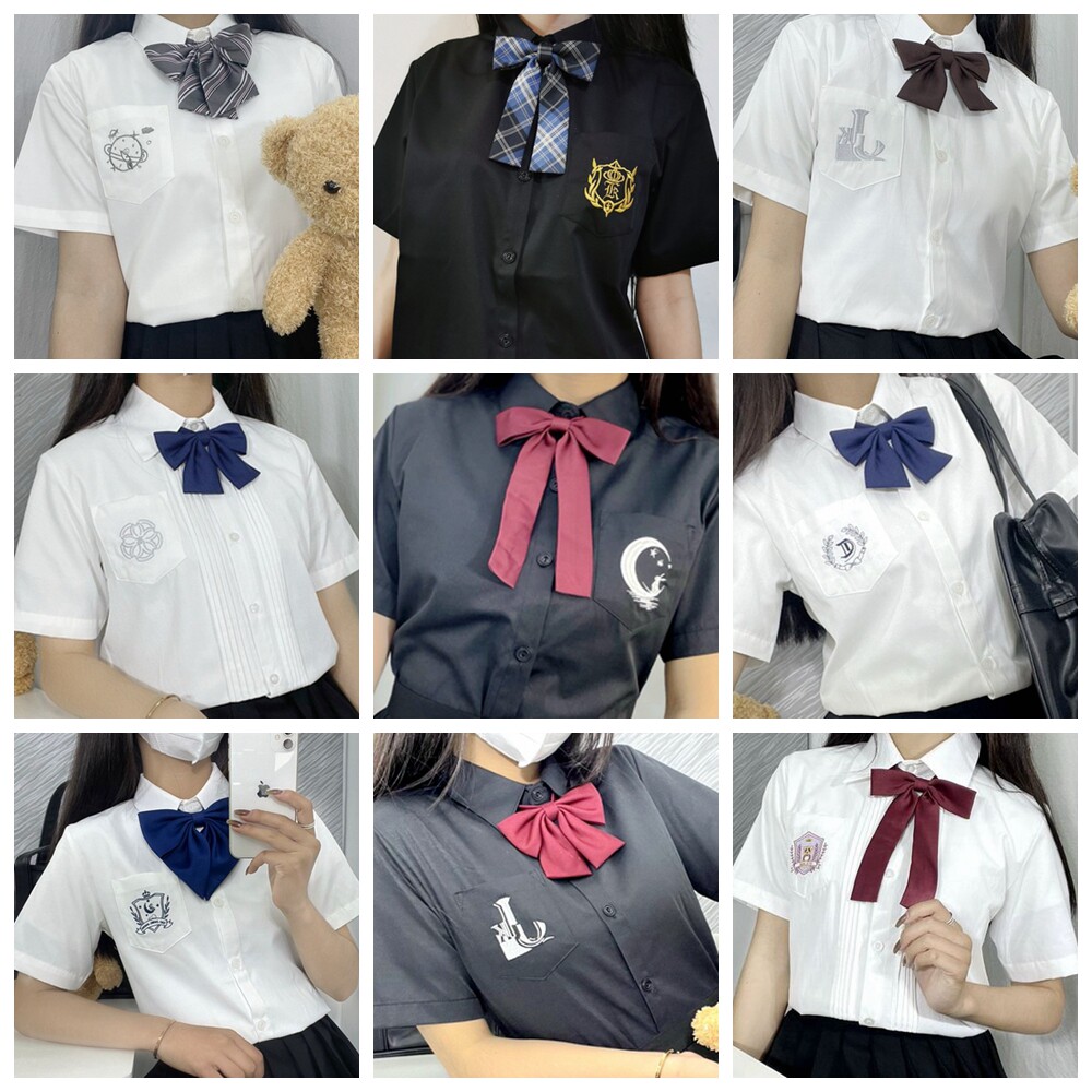 Студенческая юбка в складку, оригинальная черная японская школьная юбка, белый орган, рубашка, с вышивкой, короткий рукав