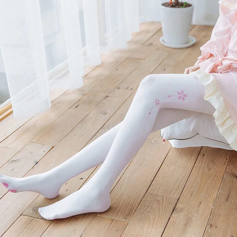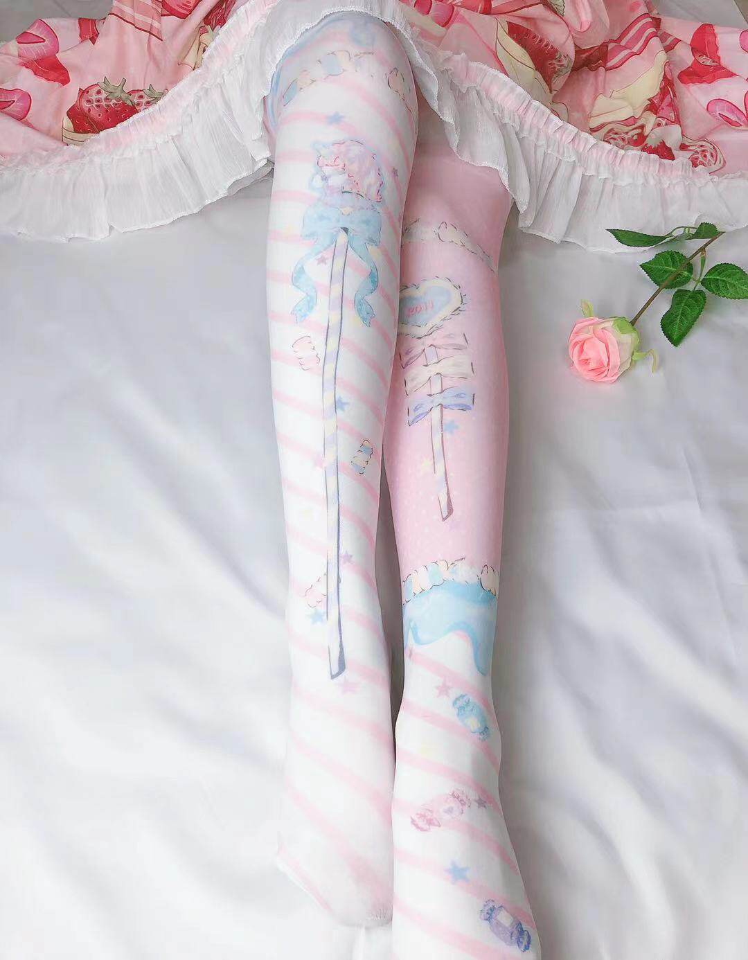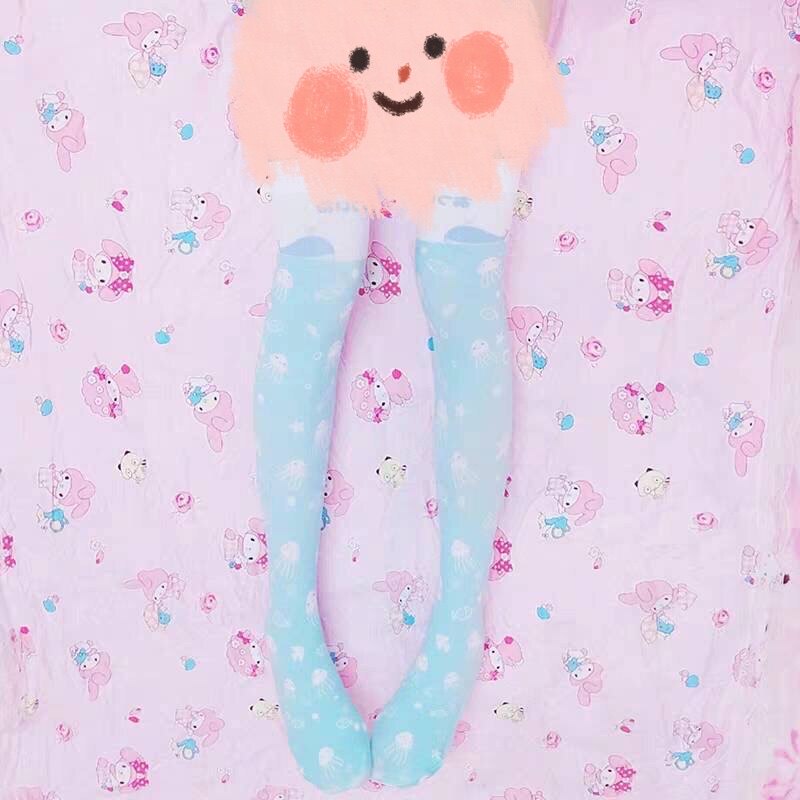 Японские колготки с бантиком, базовые розовые носки, стиль Лолита, косплей