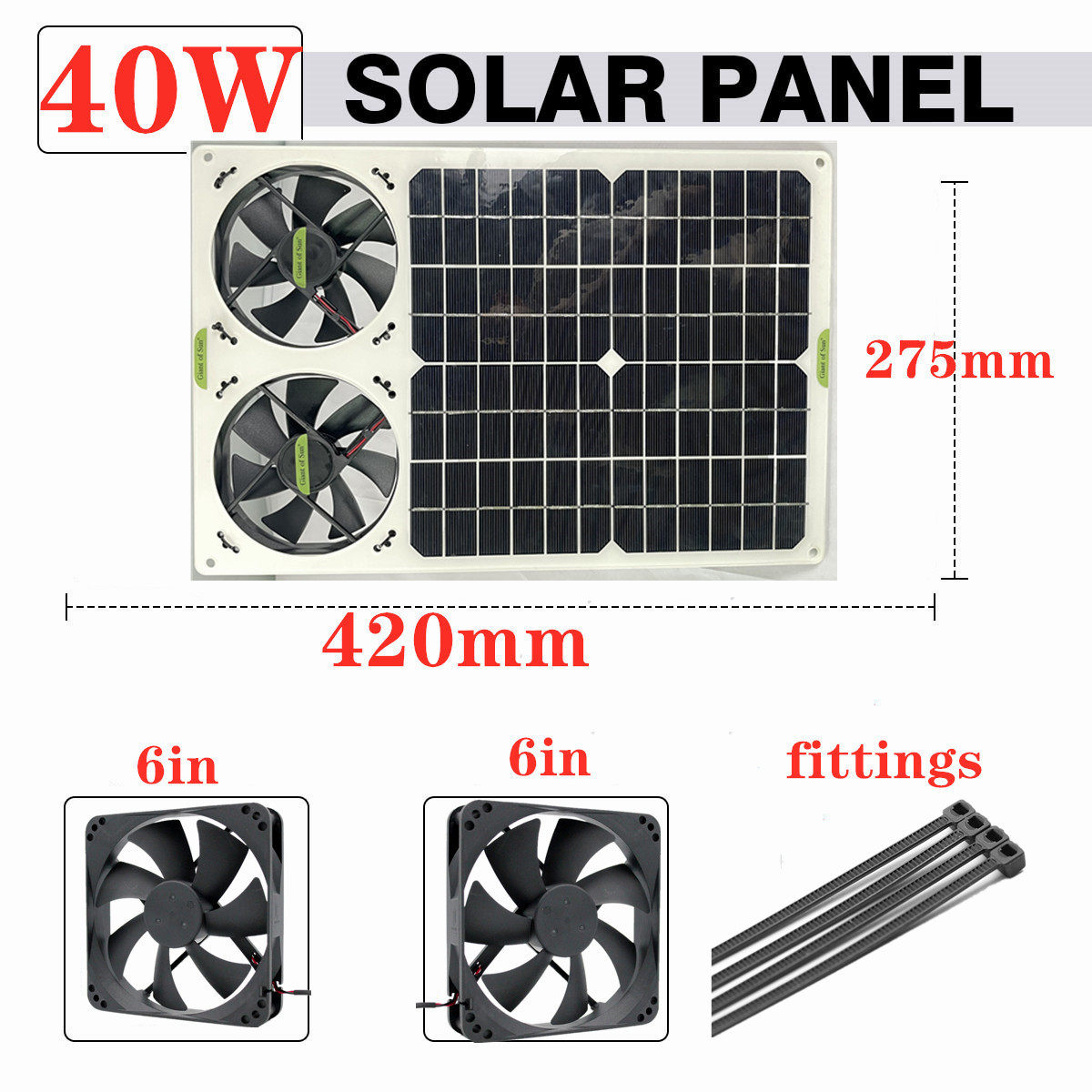 Монокристалл, световая панель на солнечной энергии, вентилятор, 40W, 18v, 6 дюймов