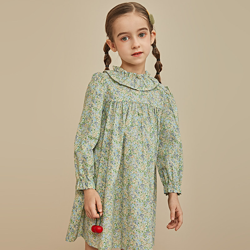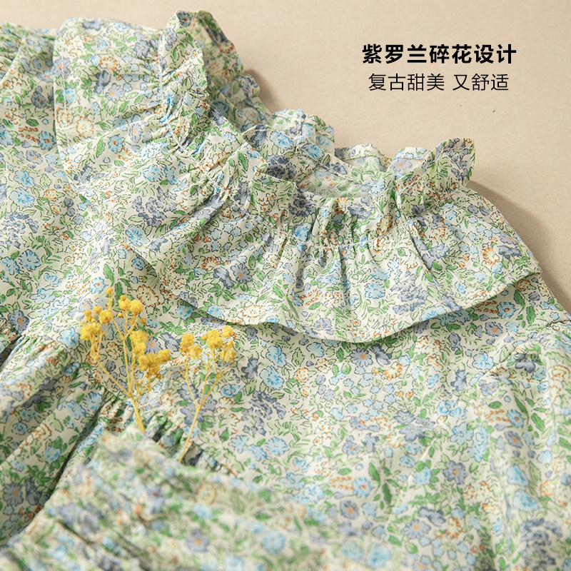 Хлопковое летнее платье, милый наряд маленькой принцессы, юбка, цветочный принт, рукава фонарики