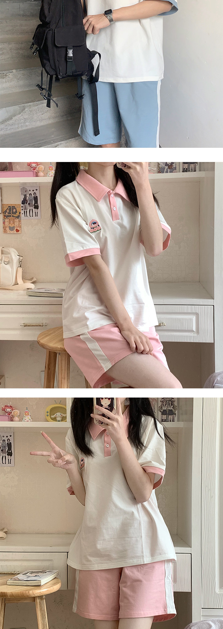 | Цвет: | Синяя футболка polo, короткий рукав, Розовые шорты |