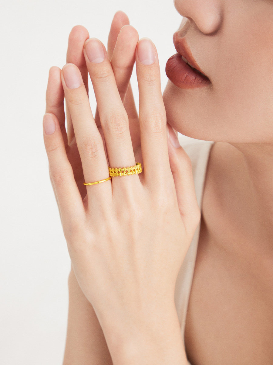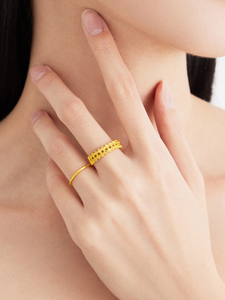 周大福 Простой круг с тремя золотыми оборудованием Полное золото.