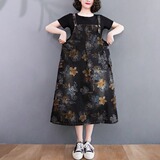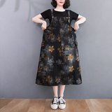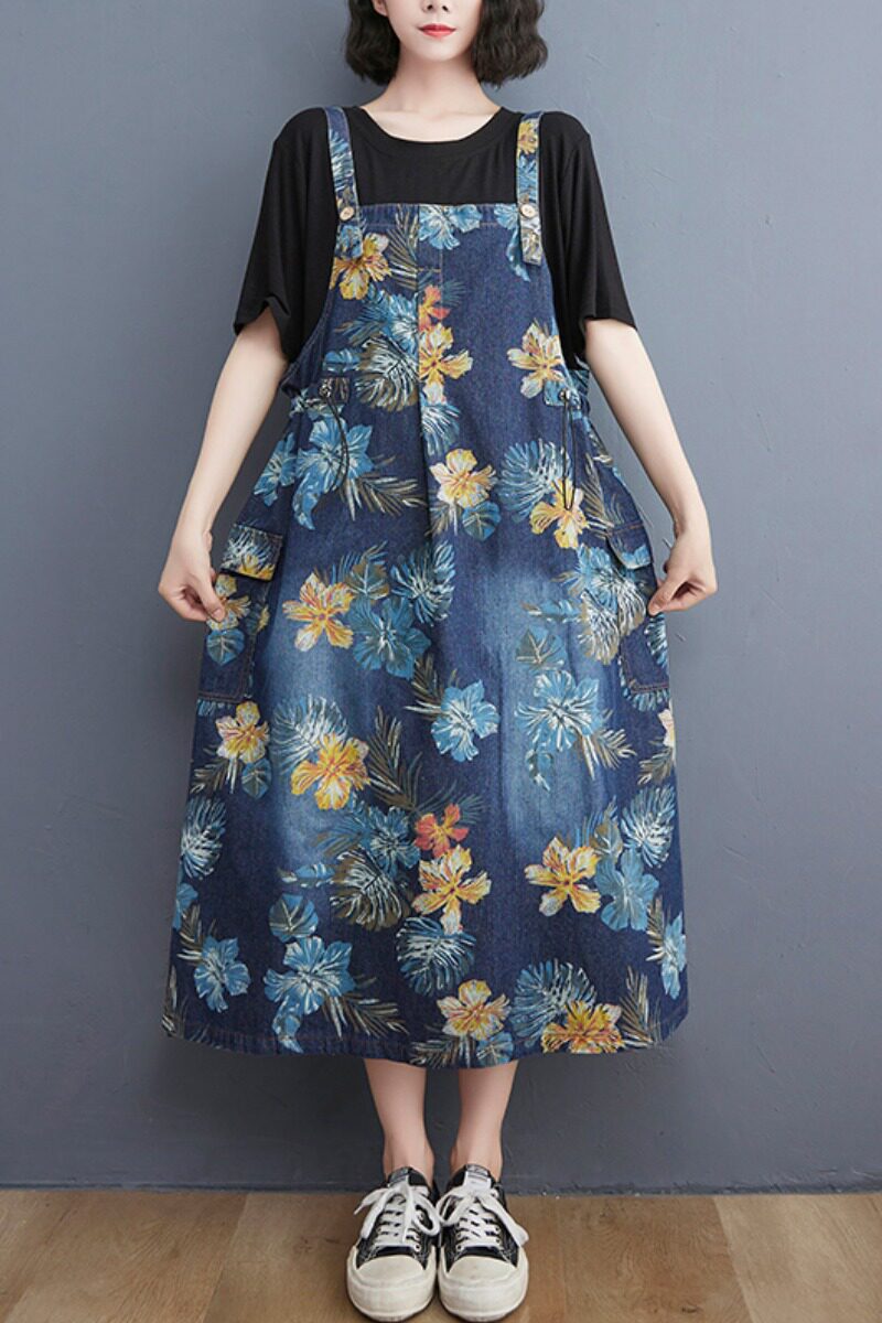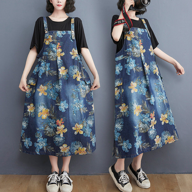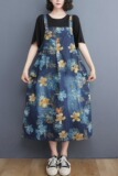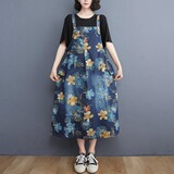 Ретро джинсовый сарафан, юбка, большой размер, свободный крой, на шнурках