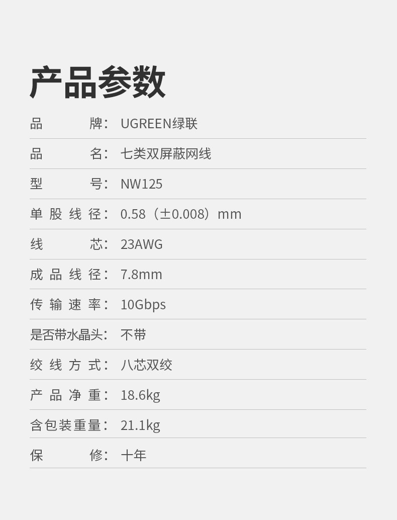 绿联 Семь типов сетевого кабеля 10MD Двойной экранирование с высокой скоростью высокой скорости 7 -типа 6 -6 6 -тип сетевого кабеля Дома