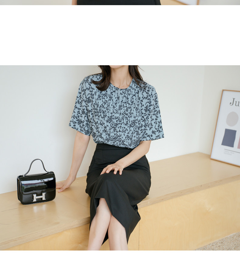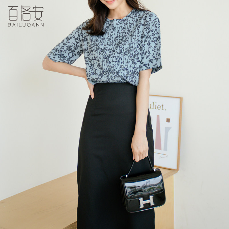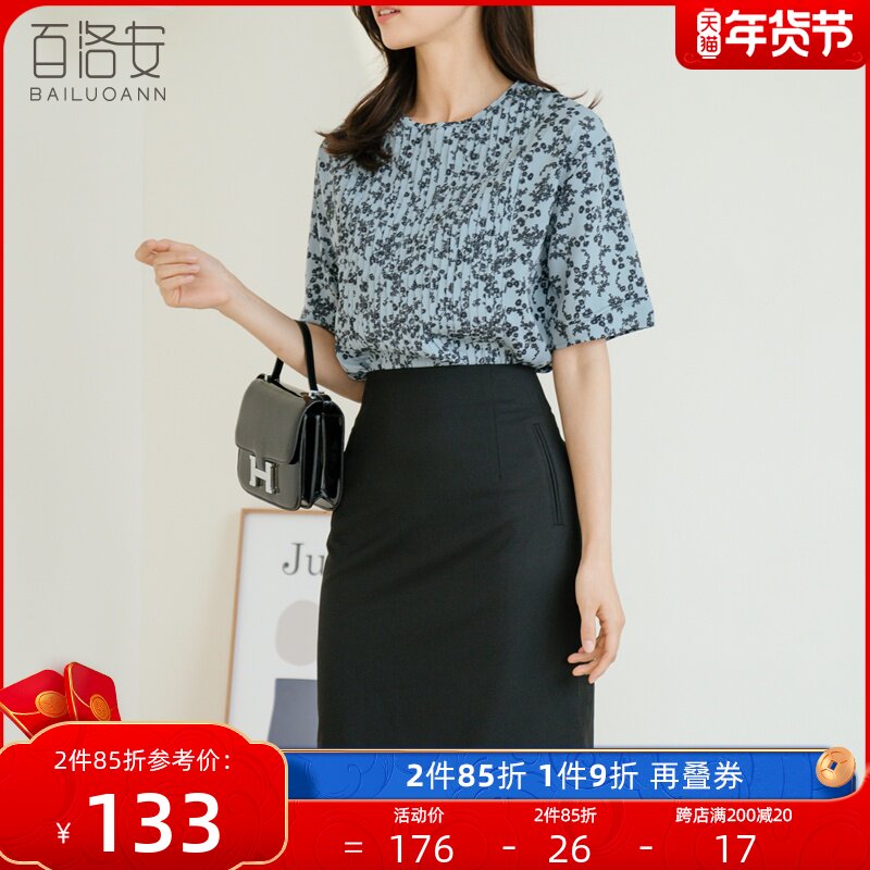 百洛安 Модная летняя элегантная рубашка, короткий рукав, цветочный принт, свободный крой