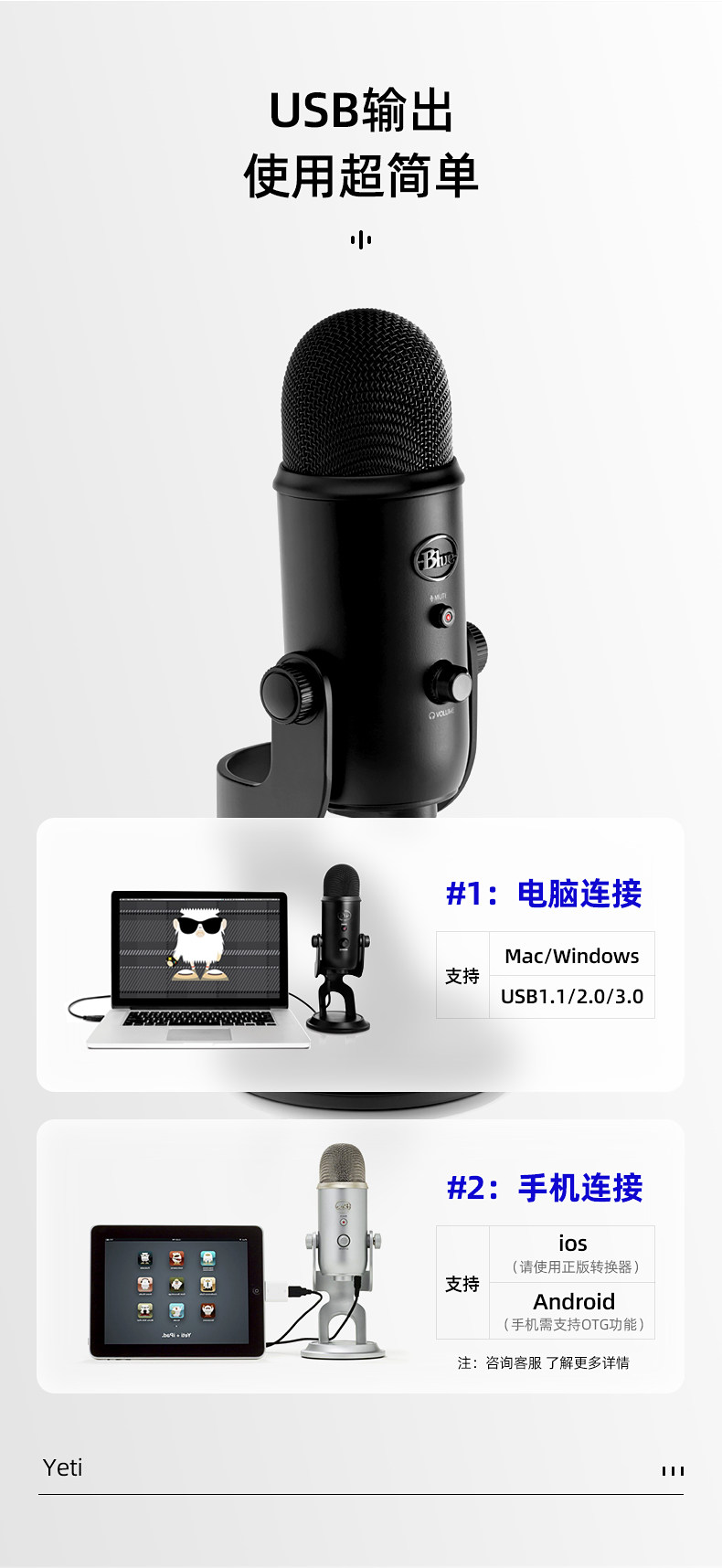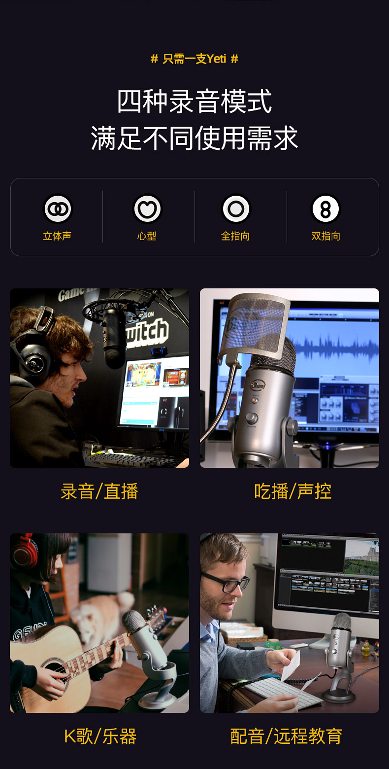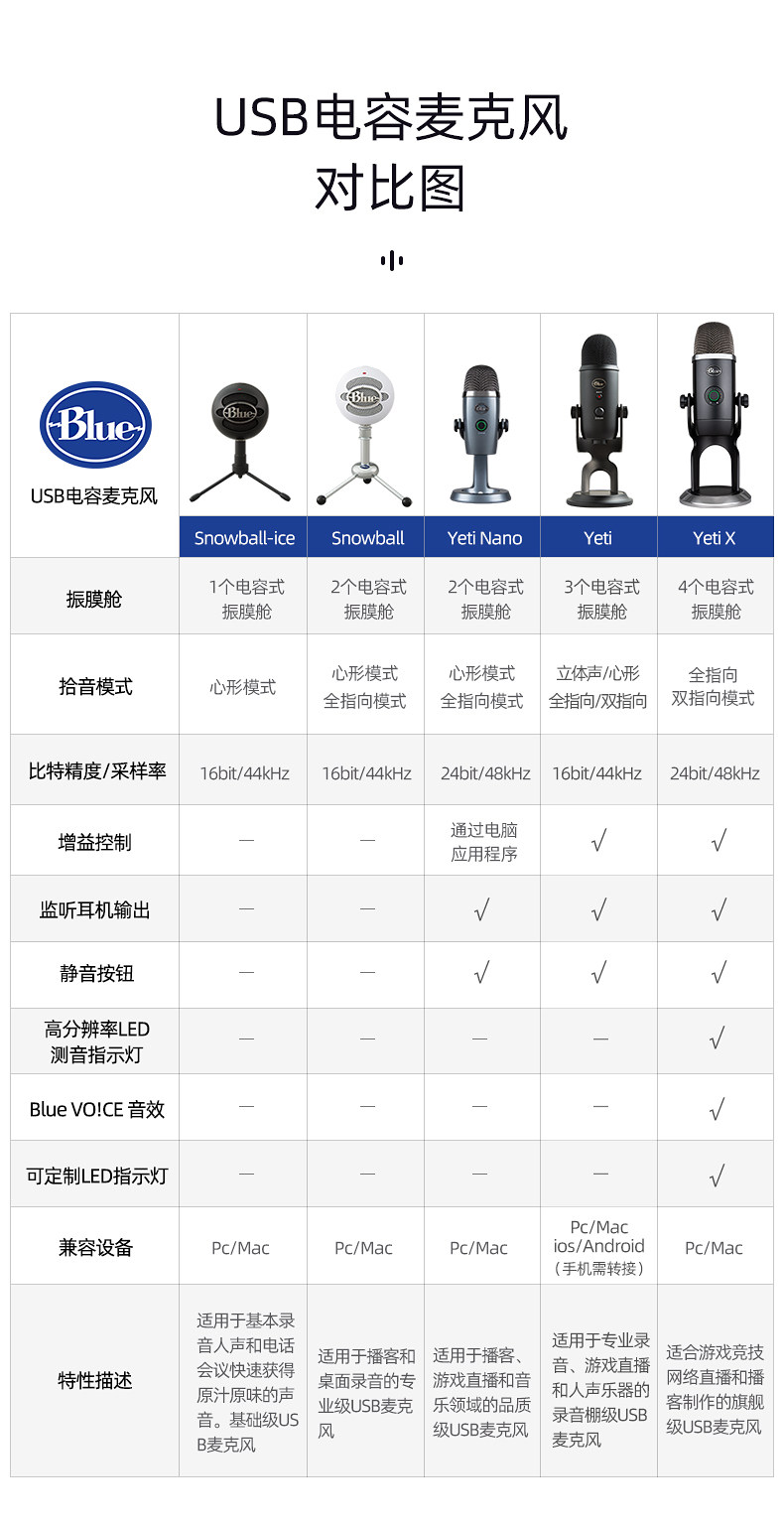 Logitech Blue Yeti Snow Monster Microphone Microphone Nano Concacitor Запись