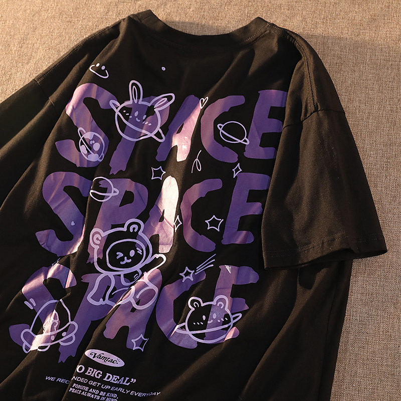 Японская мультяшная футболка с коротким рукавом для влюбленных, этнический стиль, свободный крой, в американском стиле