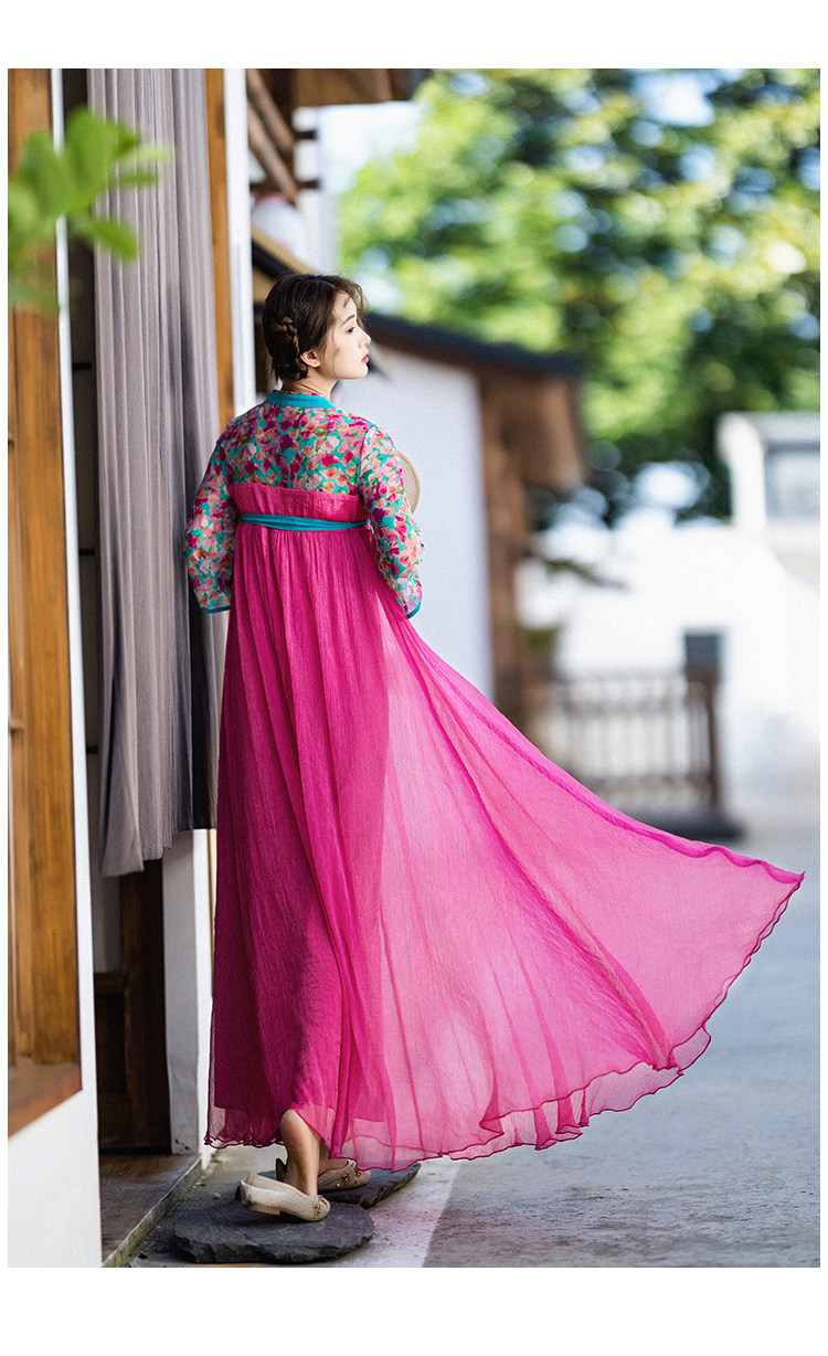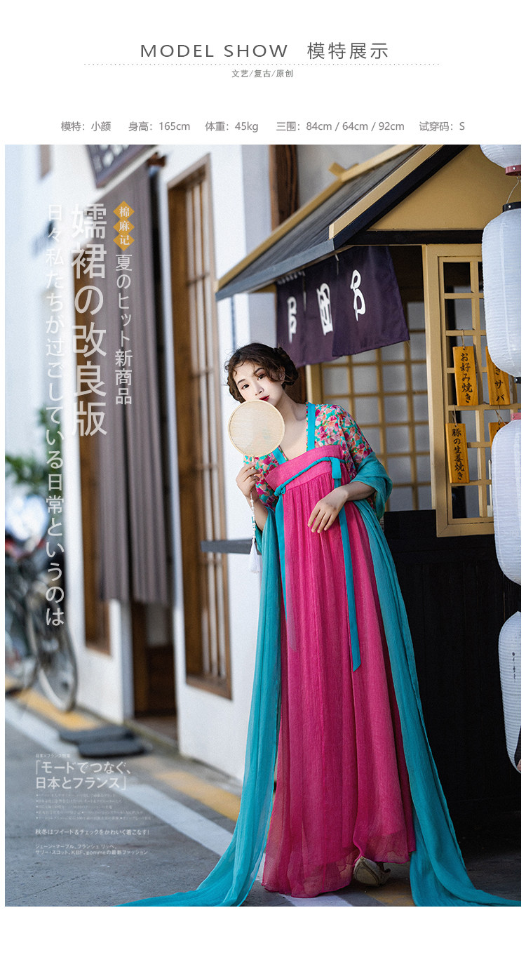 Летнее платье, ханьфу, юбка, из хлопка и льна, китайский стиль