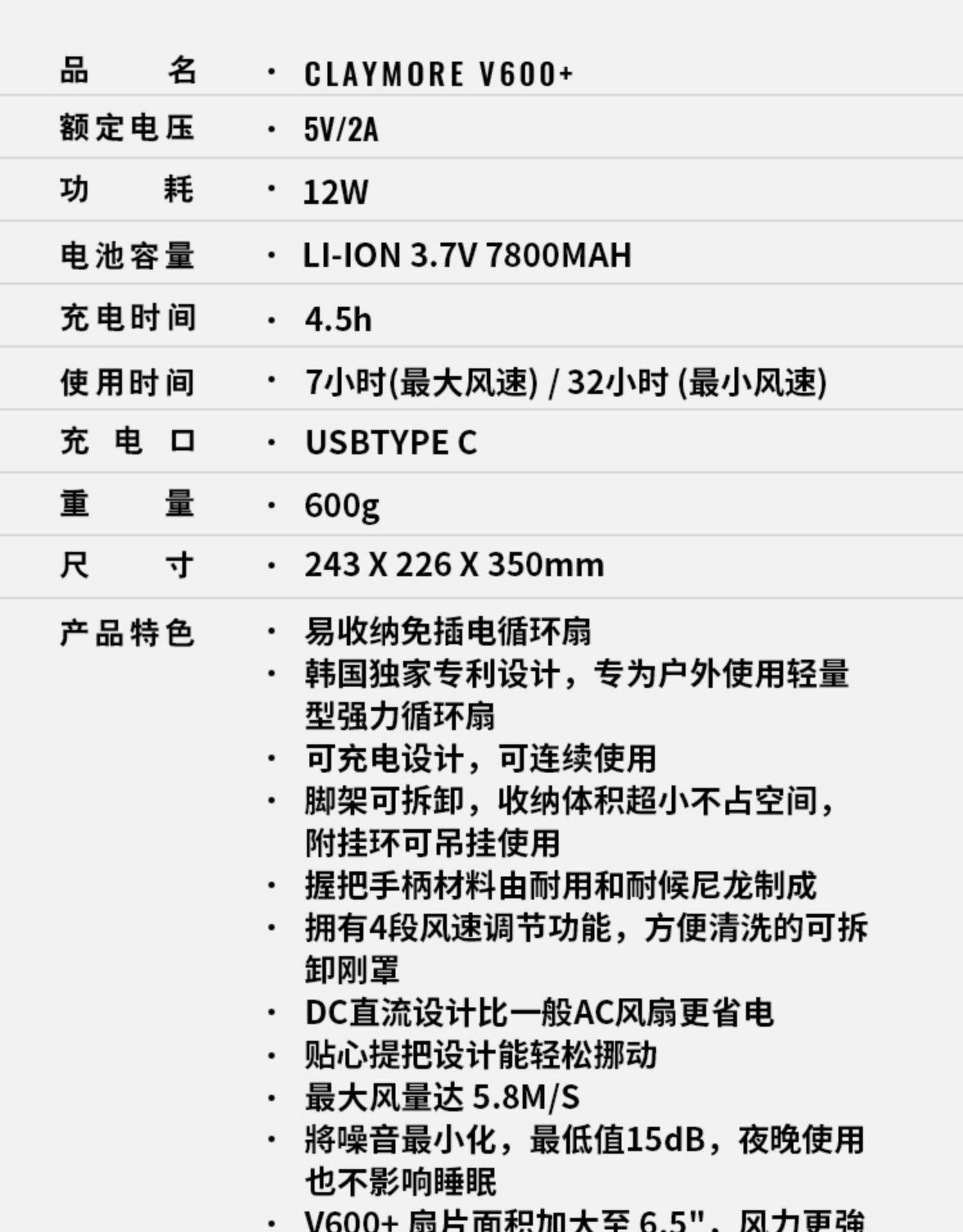 Claymore Fan v600+ V1040 Fan Fan Fan USB -зарядный вентилятор складывает портативную открытую Южную Корею