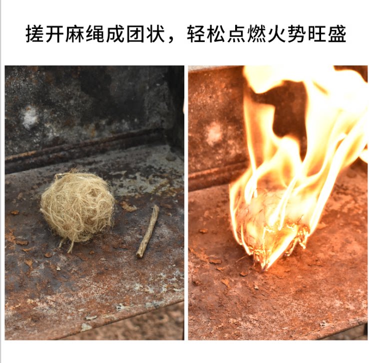 Сжигание конопляной веревки на открытые лагеря, чтобы процитировать барбекю с огненной веревкой, дикий кулинарный огонь Огненной огонь, веревка огня, карта пчелиного воска