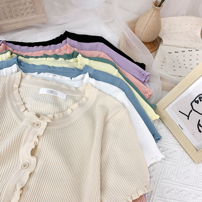 Трикотажный летний дизайнерский кардиган, в стиле Шанель, короткий рукав, свободный крой, тренд сезона