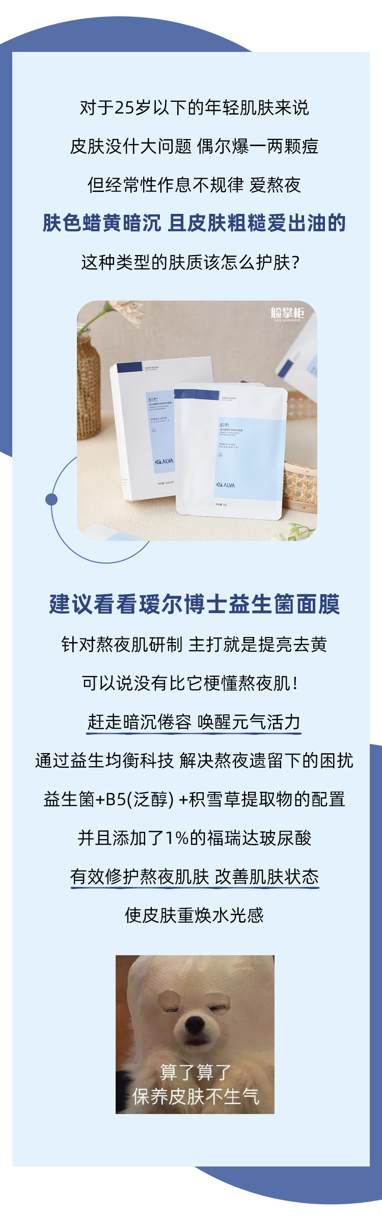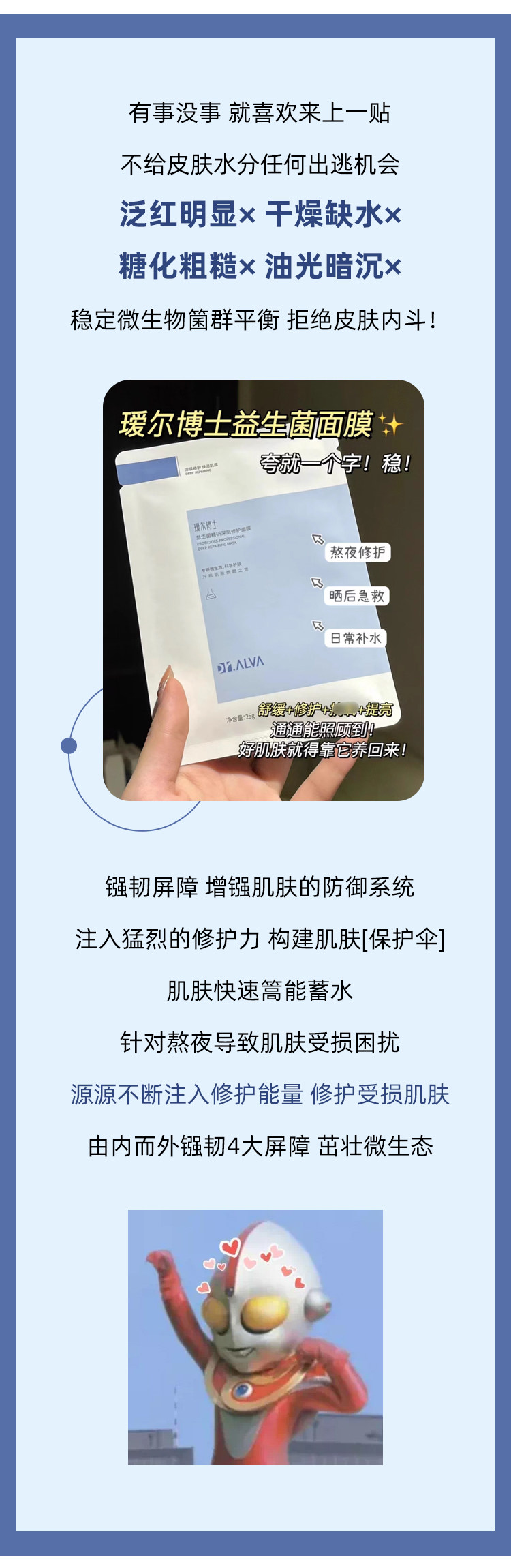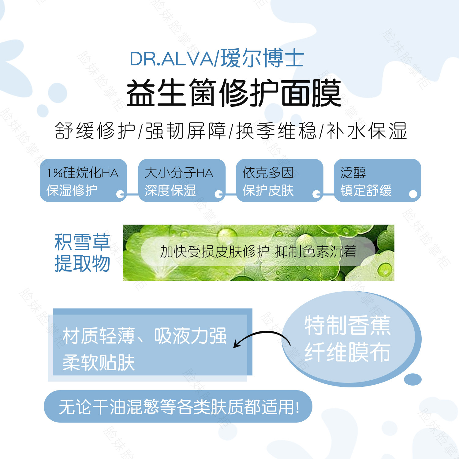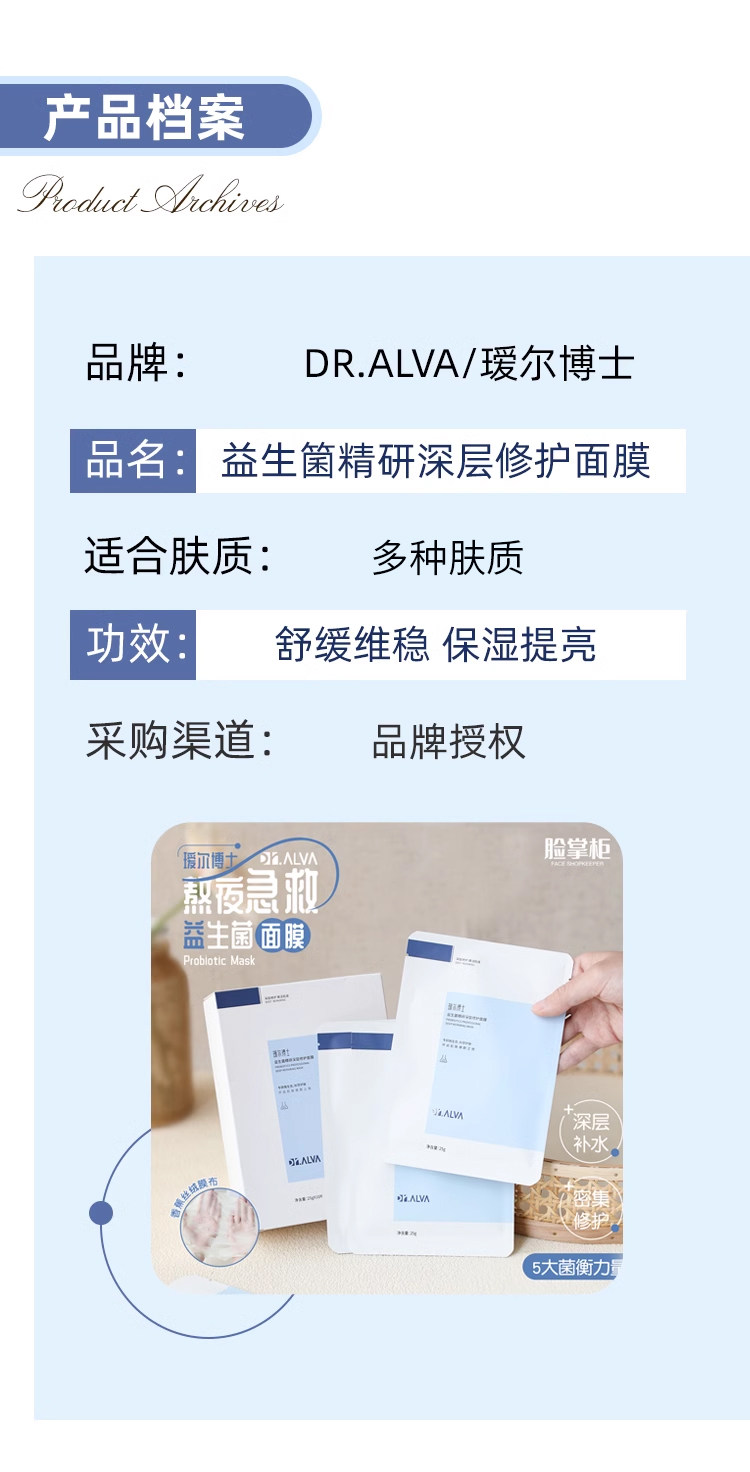 Пробиотик, увлажняющая восстанавливающая маска для лица с гиалуроновой кислотой, 10 штук