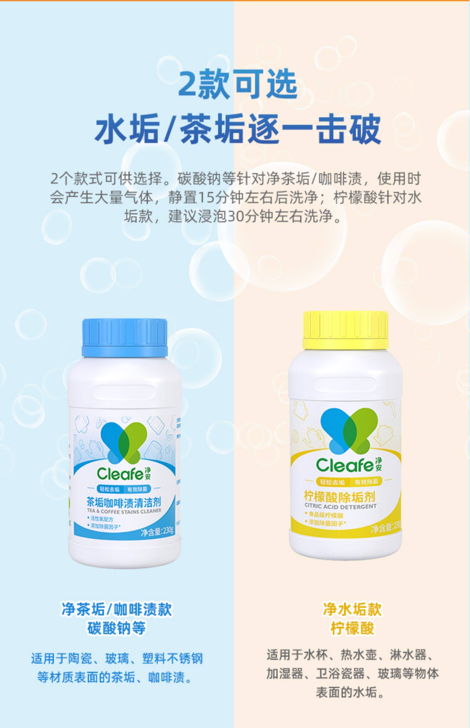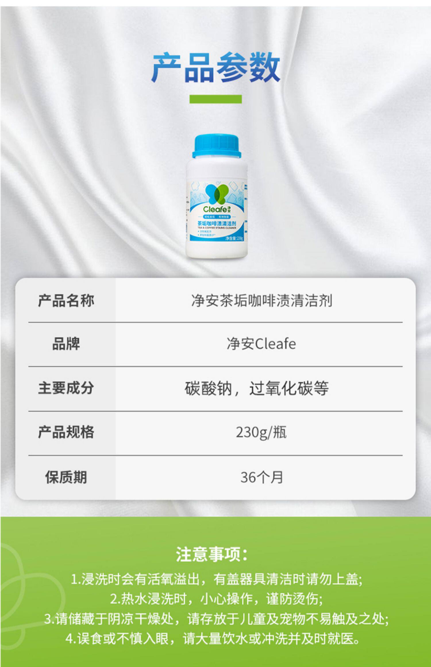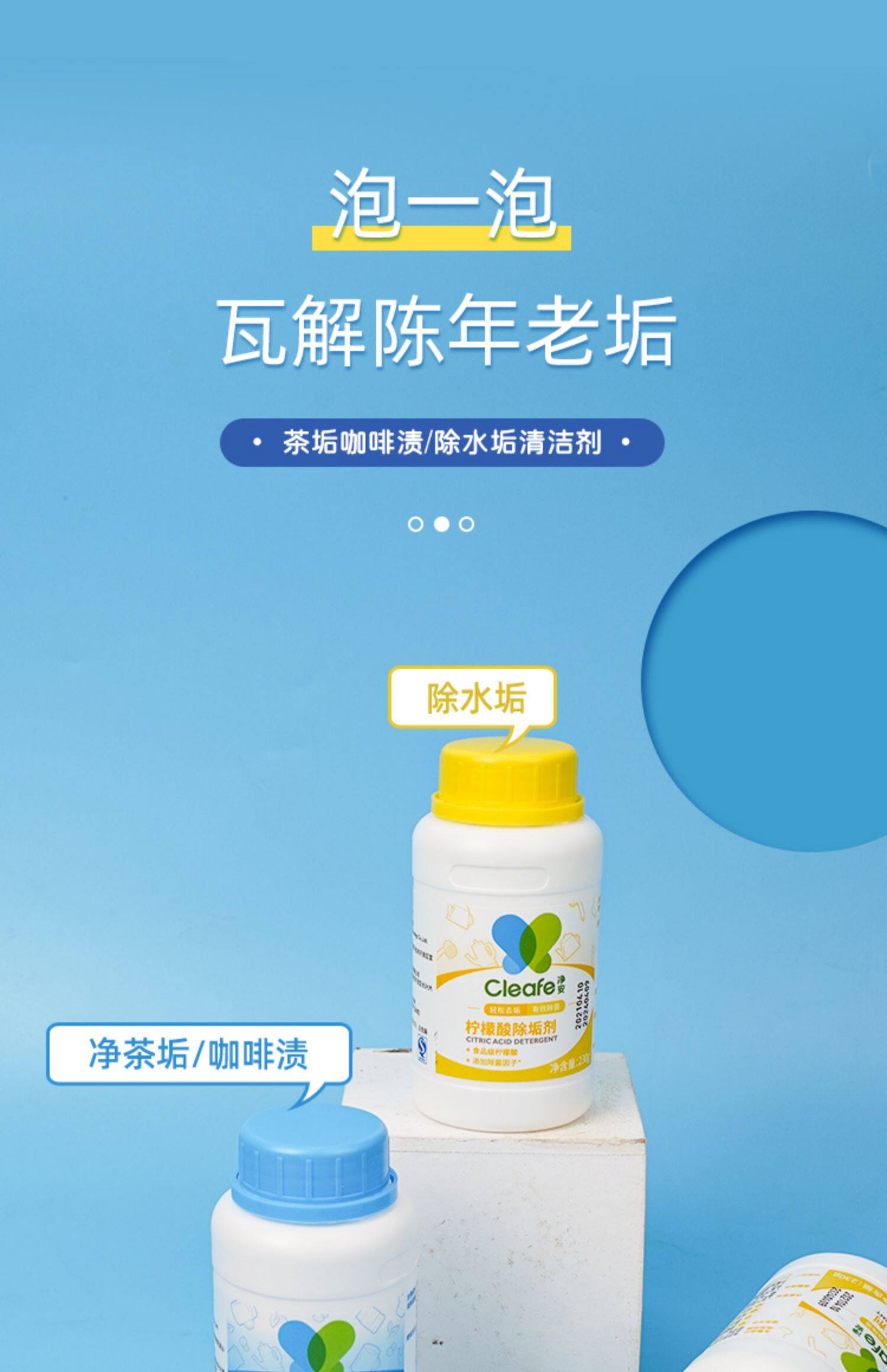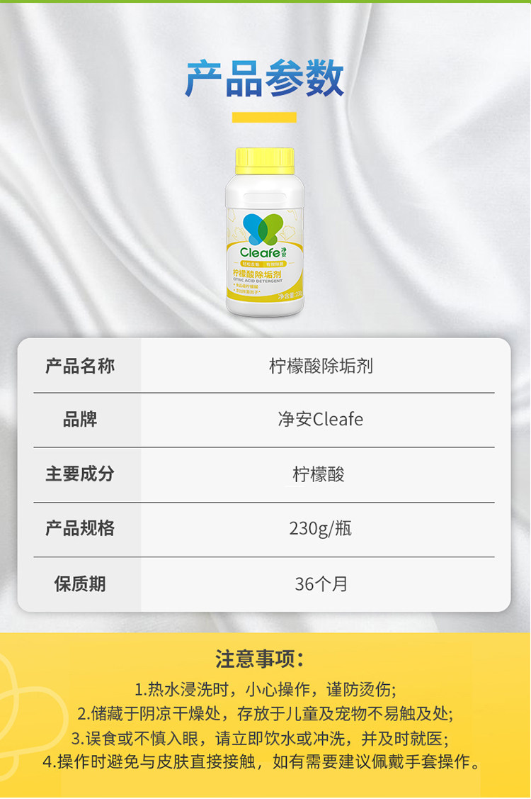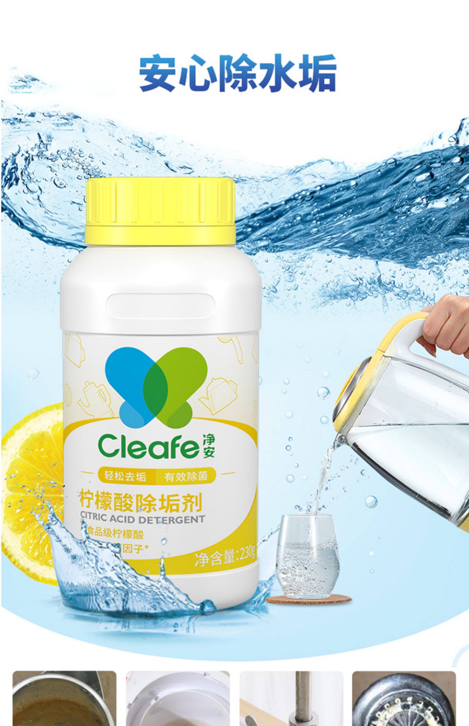 Заводская доставка папа оценивает чистящее средство для очистки масштабной чашки для удаления цитиловой кислоты 230 г/бутылка