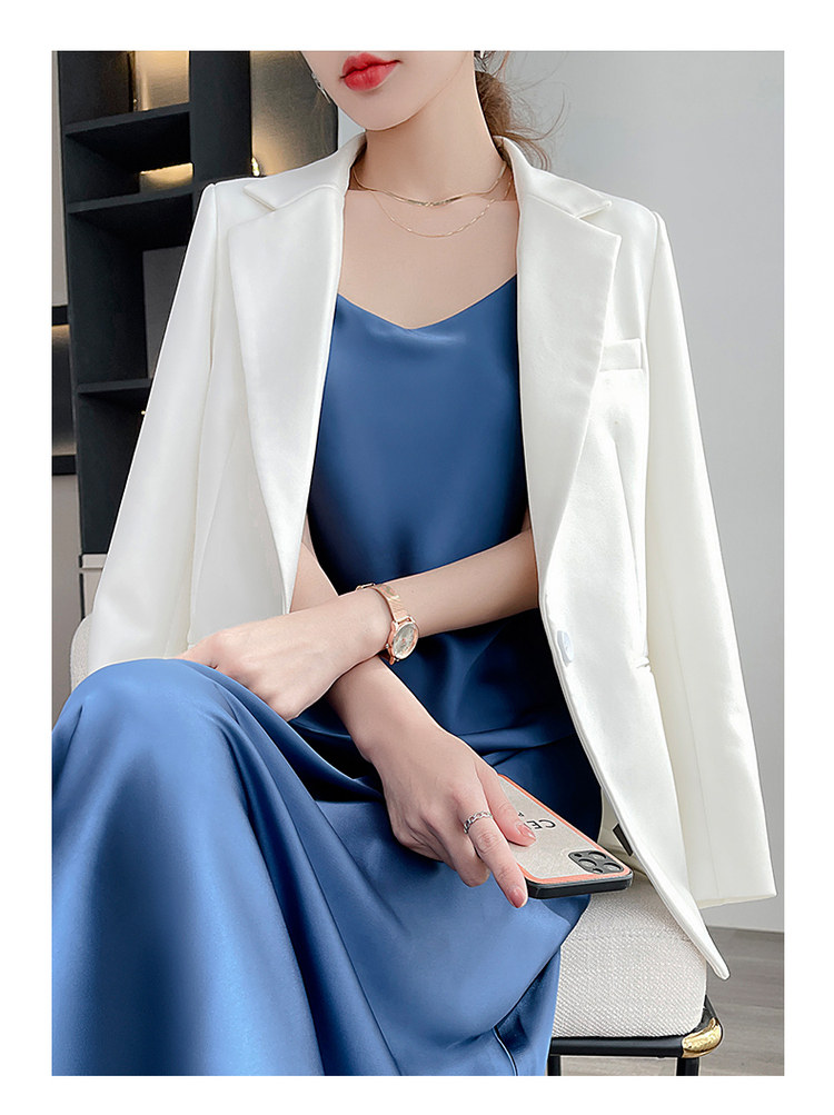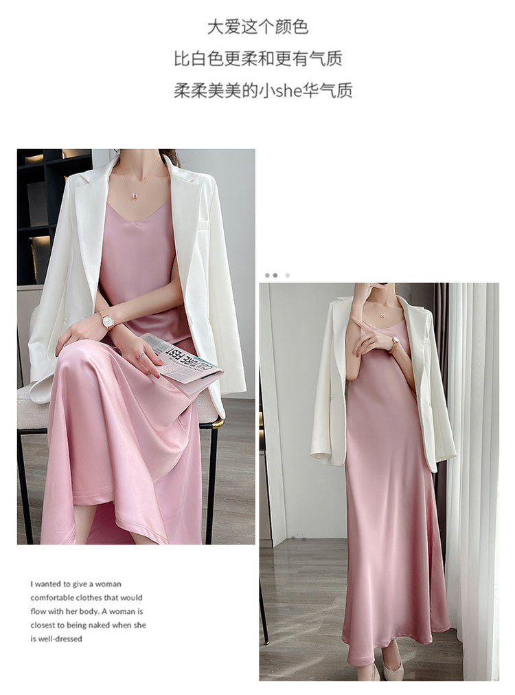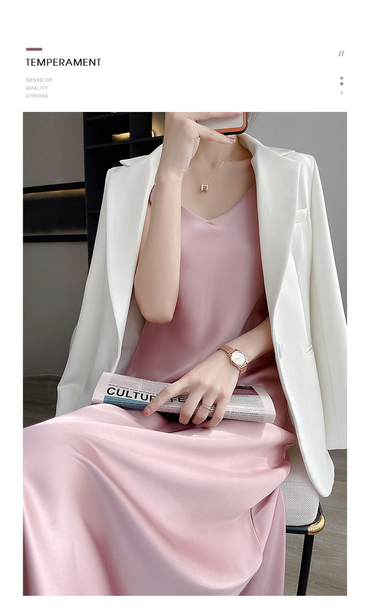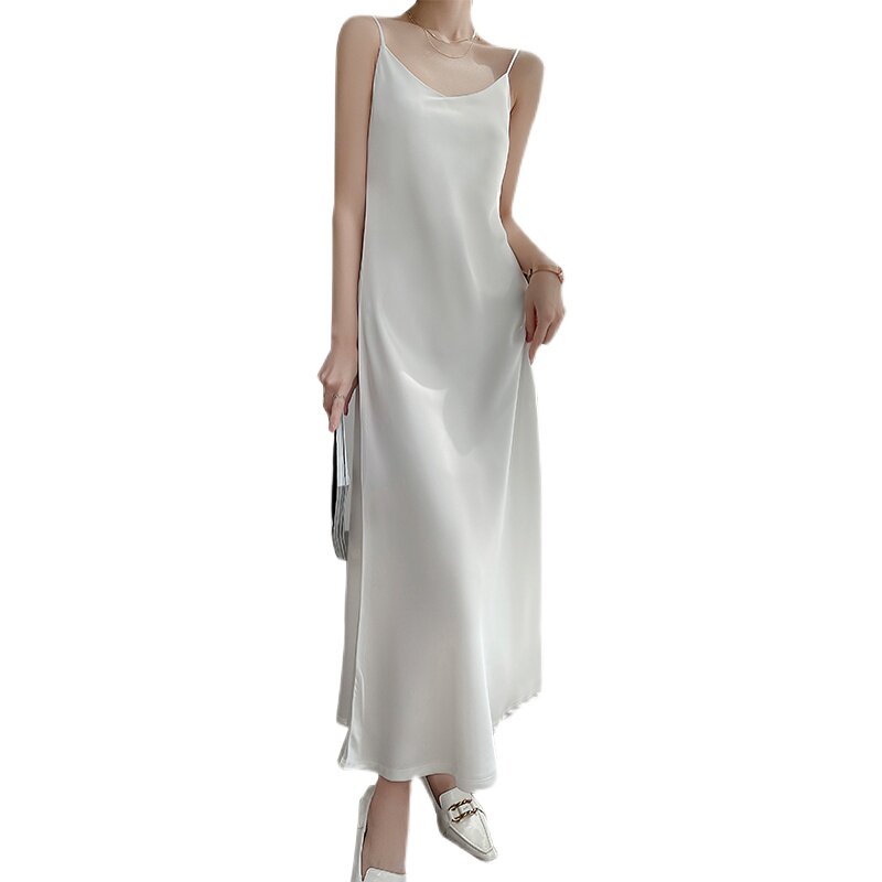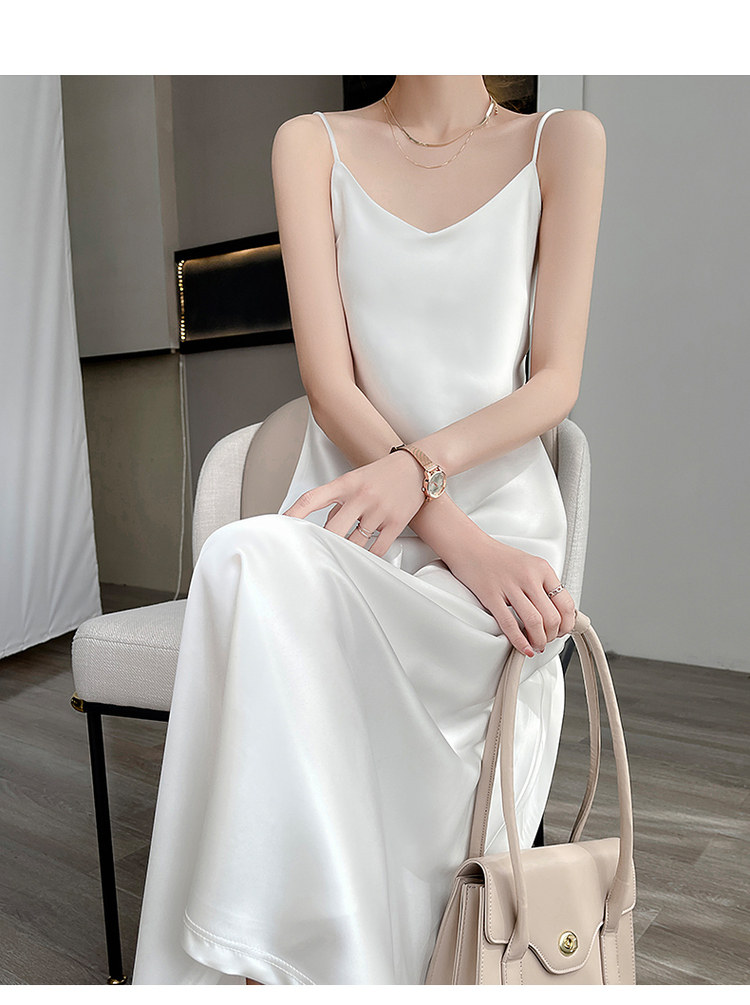 Шелковое платье, базовая белая шелковая длинная юбка, средней длины, V-образный вырез