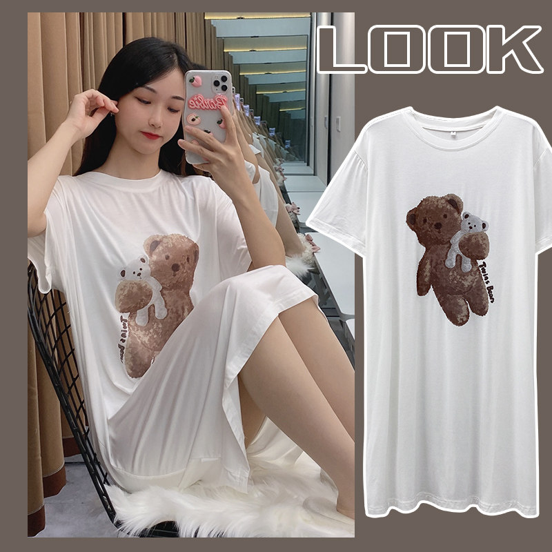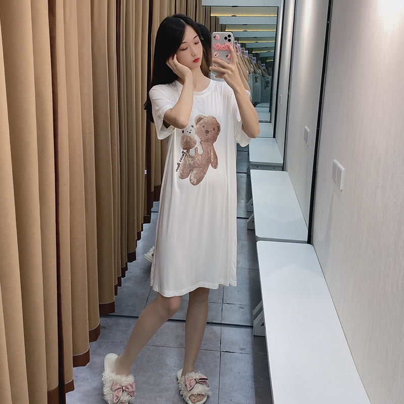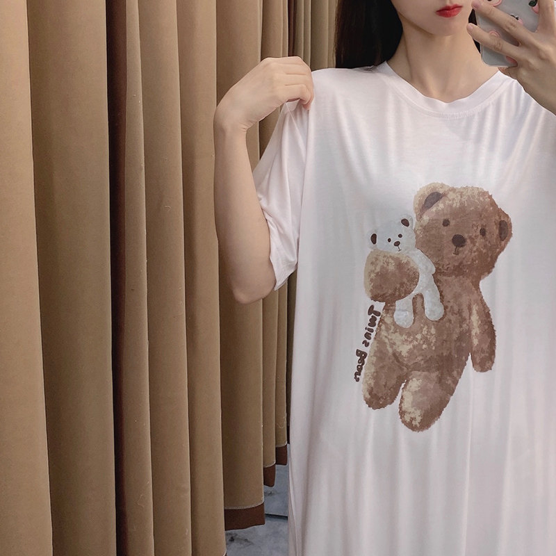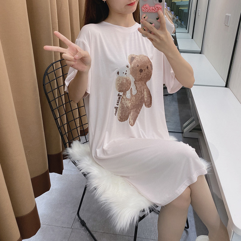 Японская летняя пижама, тонкая белая брендовая милая юбка для школьников и студентов, с медвежатами, короткий рукав