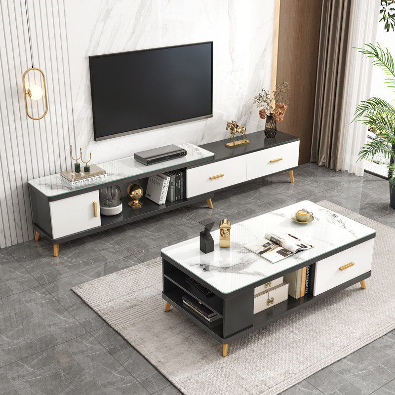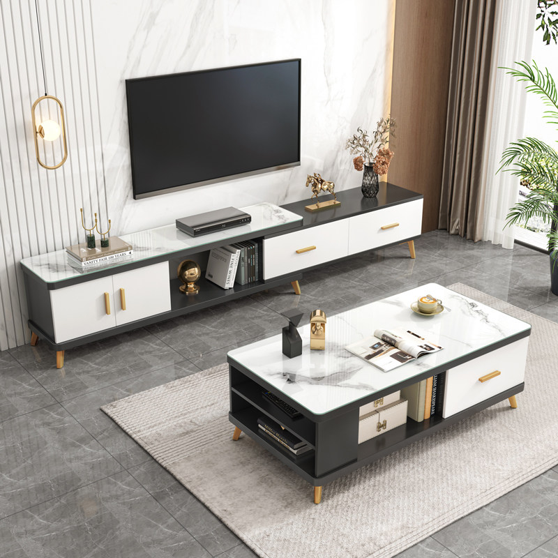 Телевизионный шкаф легкий роскошный кофейный столик Комбинация современная минималистская дом маленькая квартира может выдвигать на стену на стену