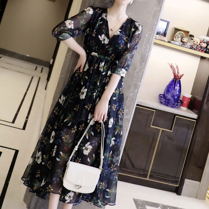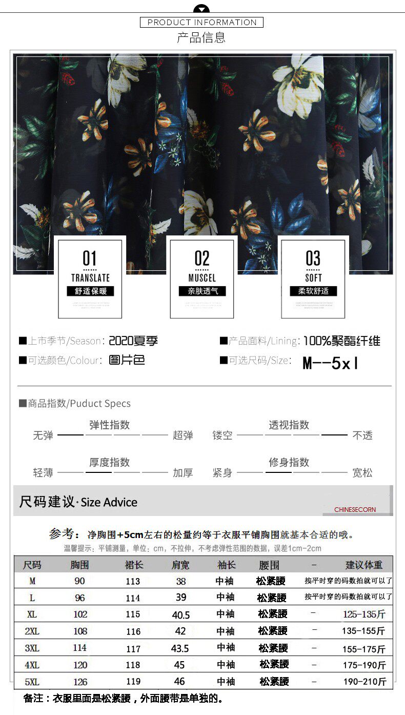 Летняя шифоновая юбка, платье, большой размер, в западном стиле, подходит для полных девушек
