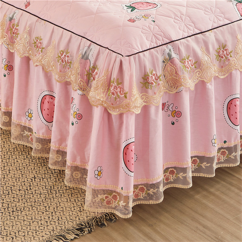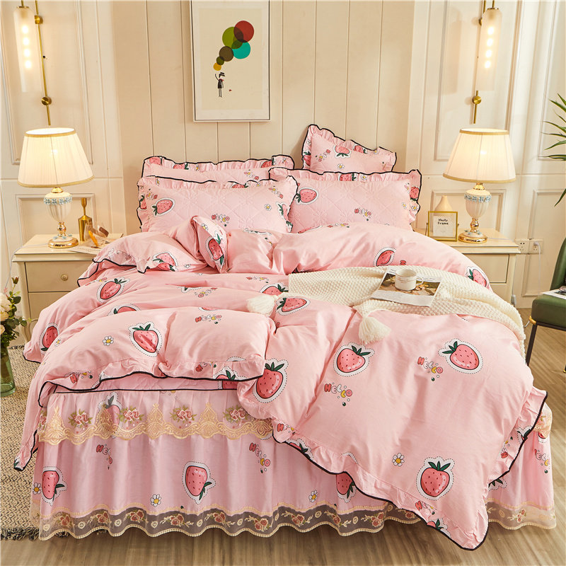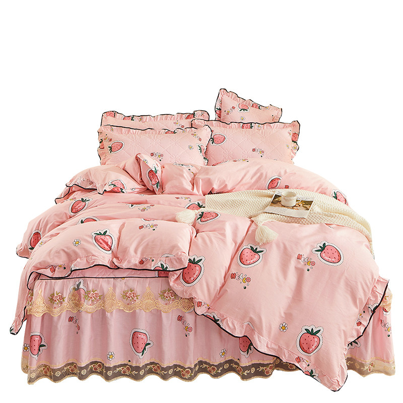 Корейское хлопковое покрывало, комплект, одеяло, пододеяльник, нескользящая простыня, 4 предмета, 1.8м, кружевное платье