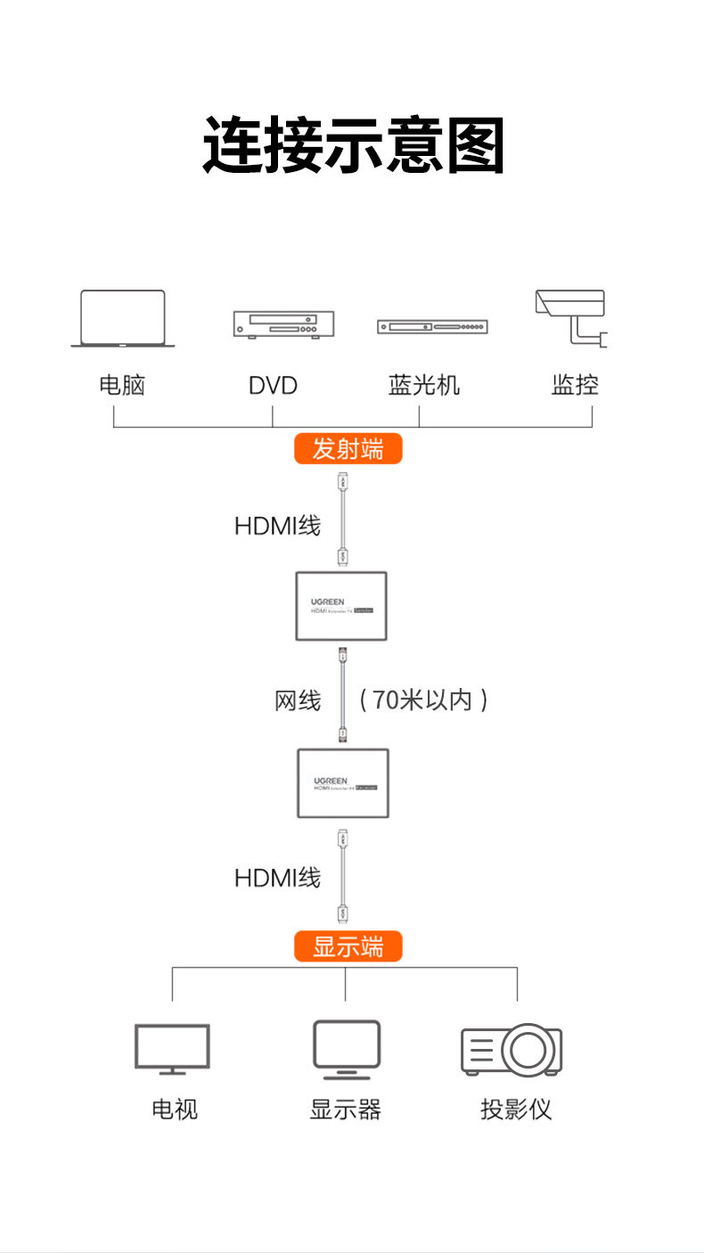 绿联 Удлинитель сетевого кабеля HDMI 50/150/200 метров 4k высокой четкости rj45 сетевой акцент преобразование видеосигнала мониторинга усиление локальной сети улучшенный USB-разъем KVM-трансивер сетевой передатчик