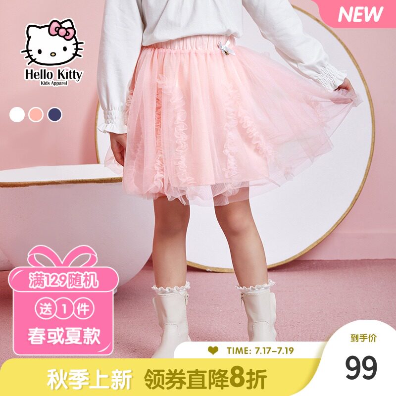 Hello Kitty, весенняя фактурная юбка, детская одежда, подходит для подростков