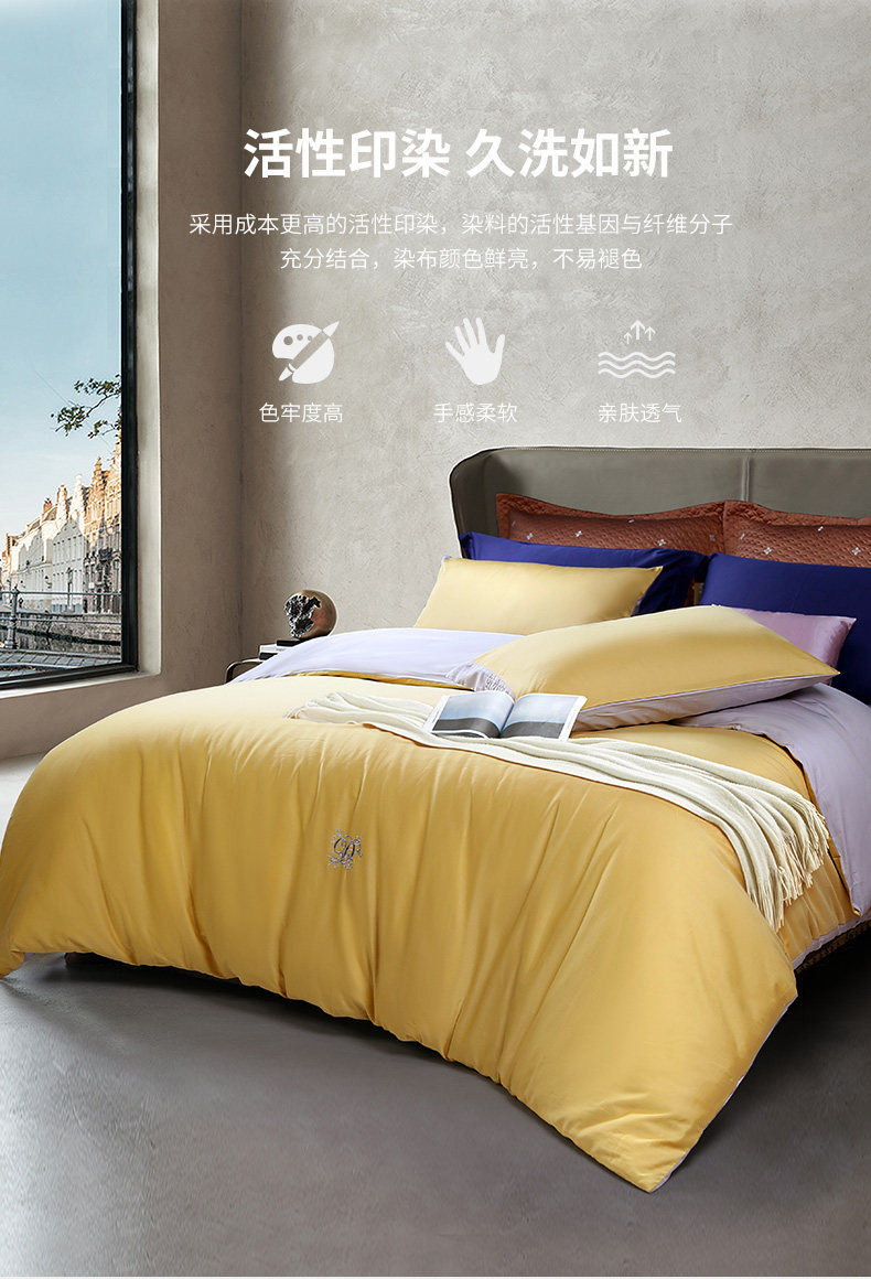 黛富妮 Комплект, хлопковая простыня, 4 предмета, простой и элегантный дизайн, с вышивкой, постельные принадлежности
