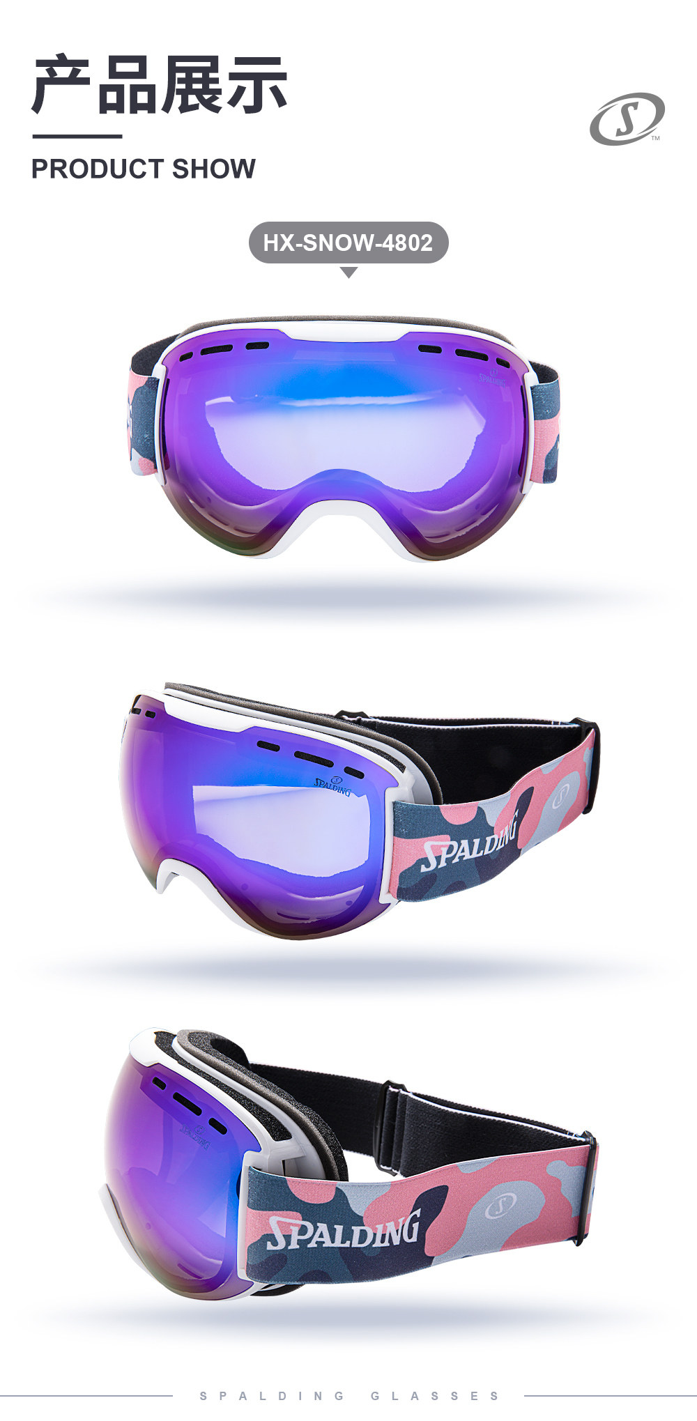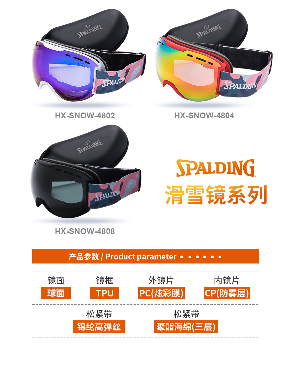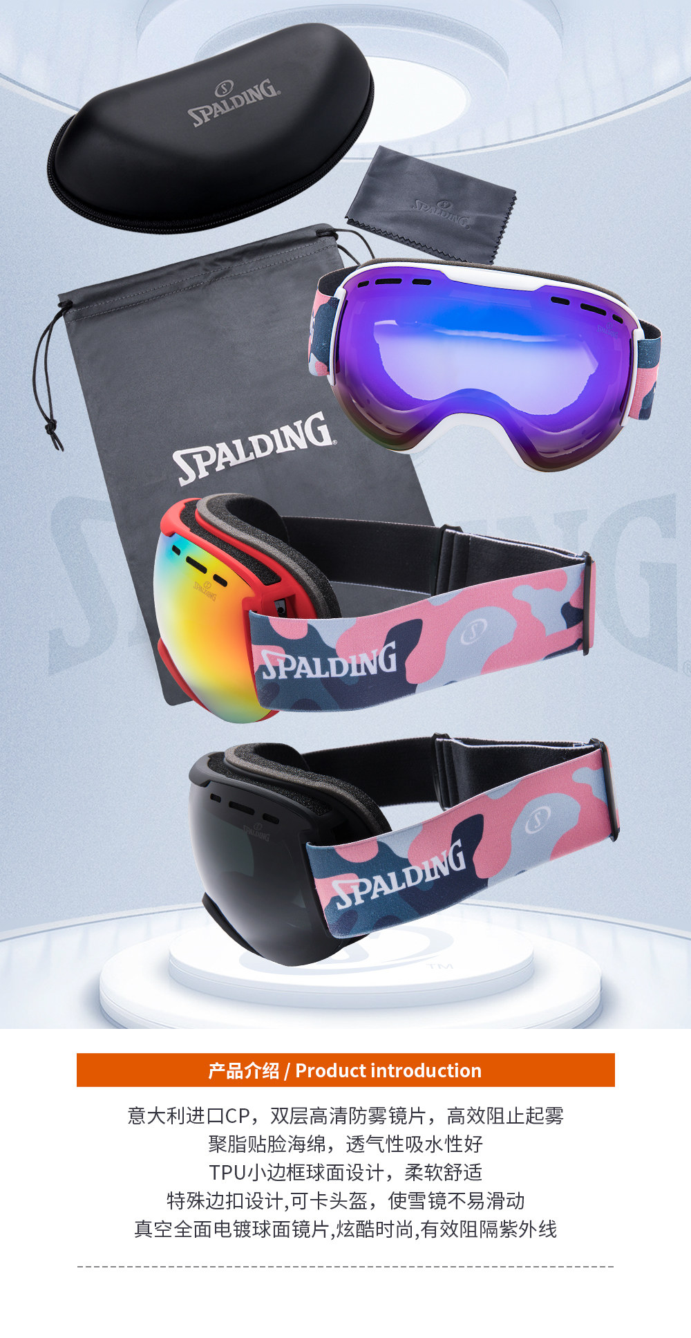 Spalding, лыжные очки подходит для мужчин и женщин, двухэтажное лыжное снаряжение без запотевания стекол