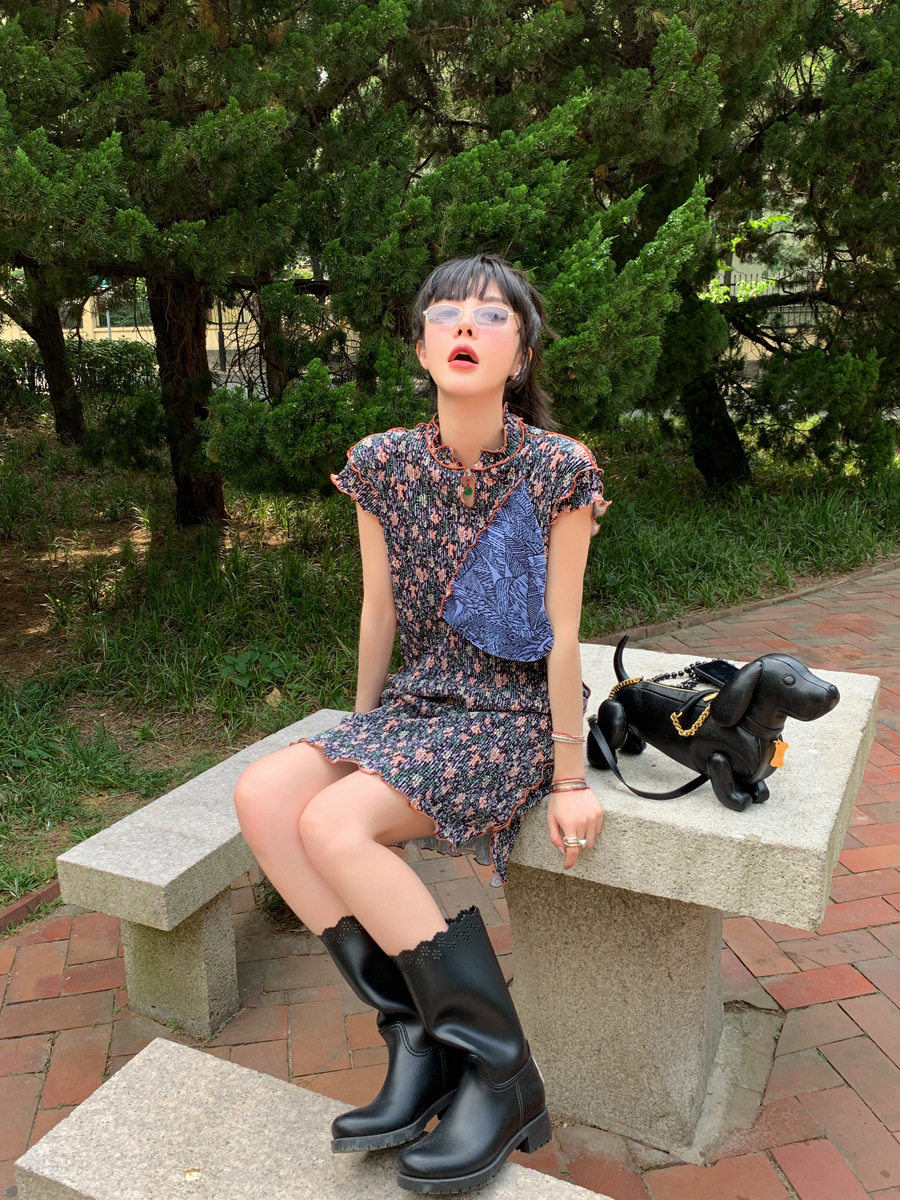 - Верх - черный цветочный.