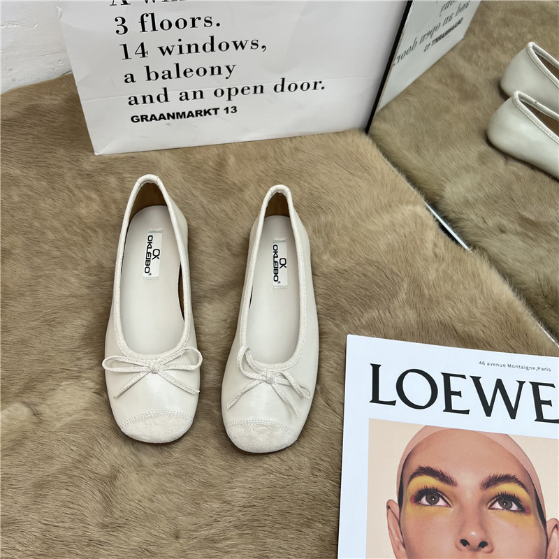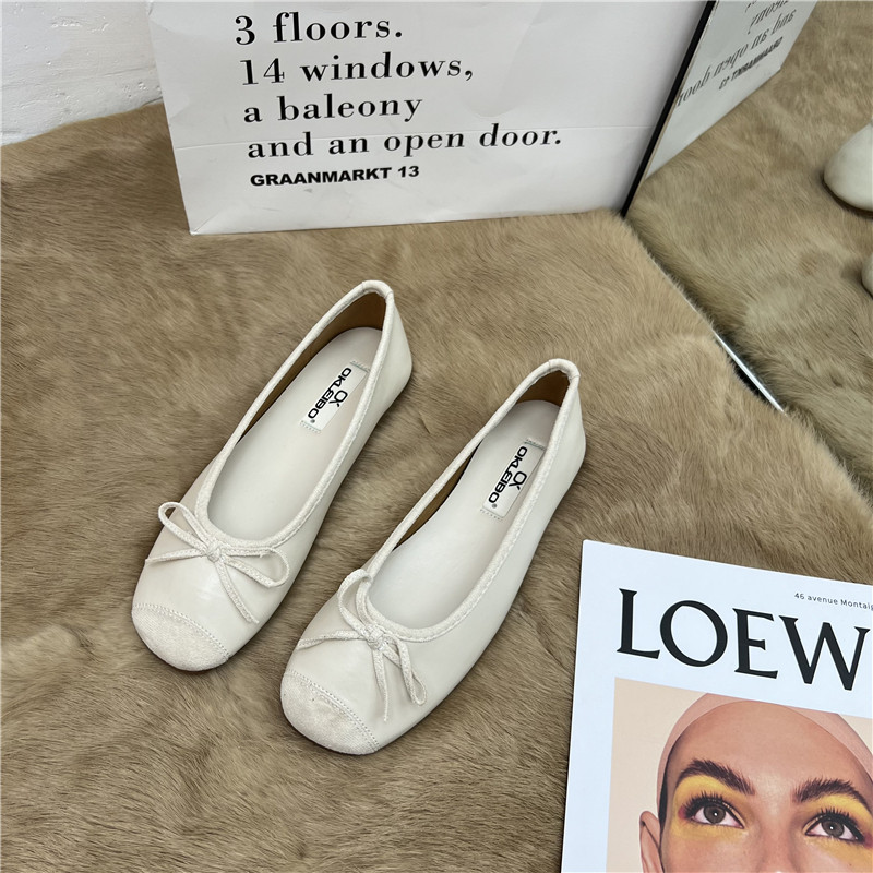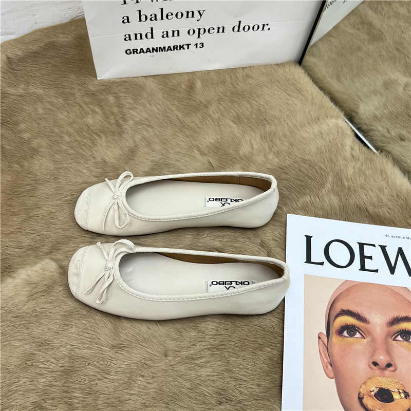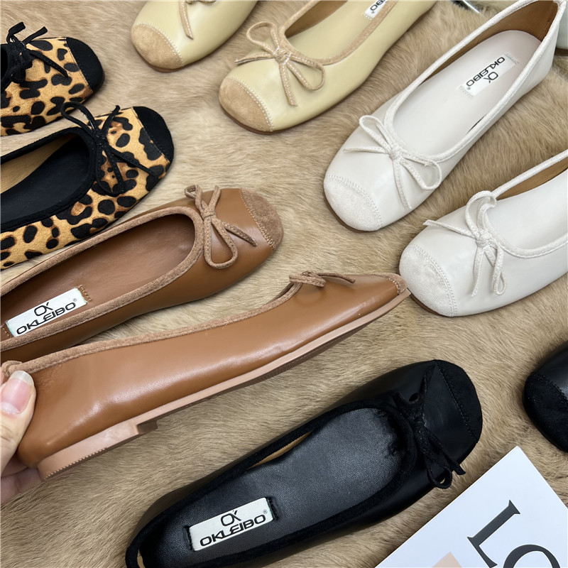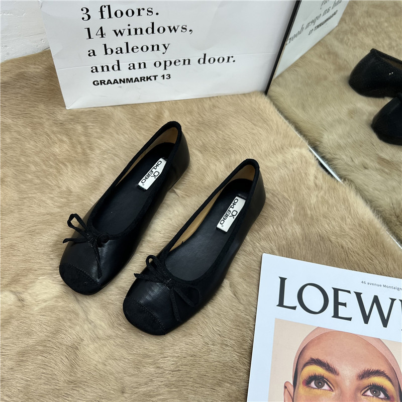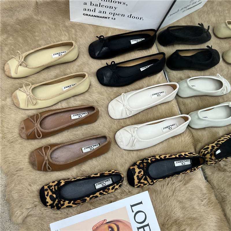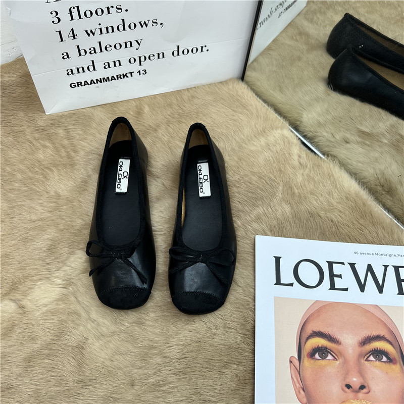Женские балетки с бантом, 2025 г., универсальные темпераментные рабочие туфли «Фея», мягкая кожа, туфли «бабушка» на низком каблуке с мелким носком