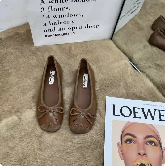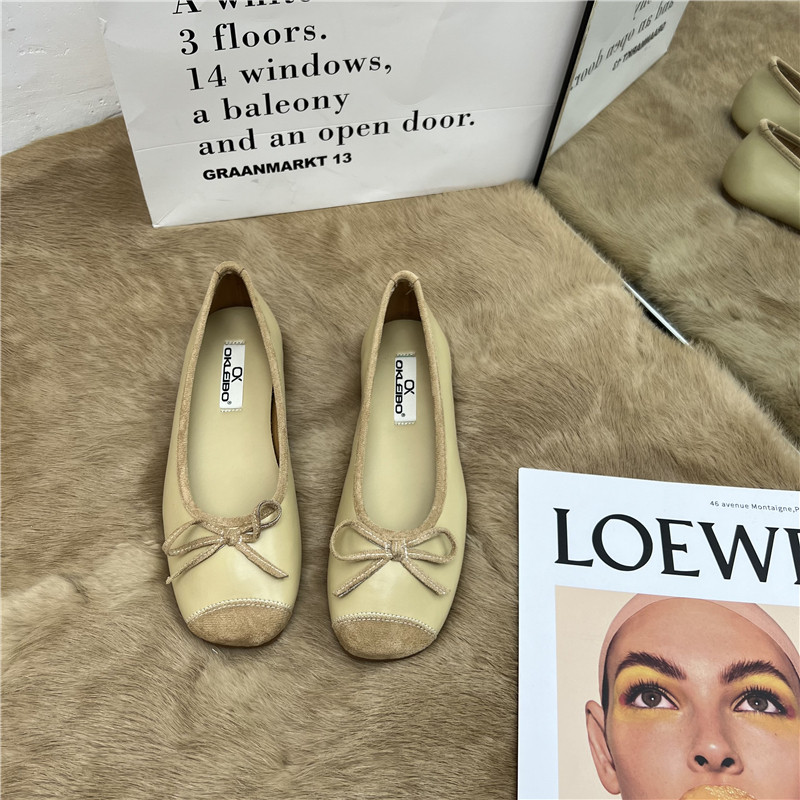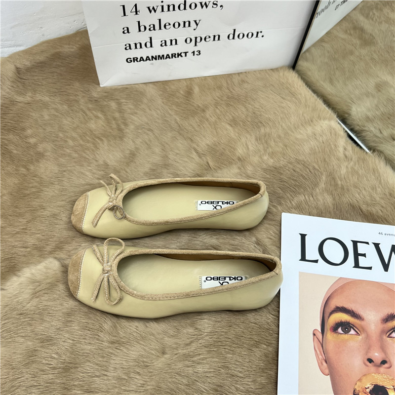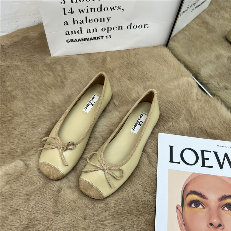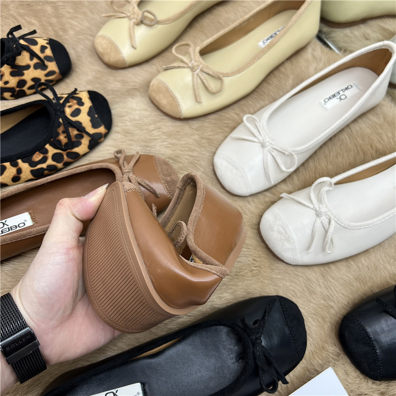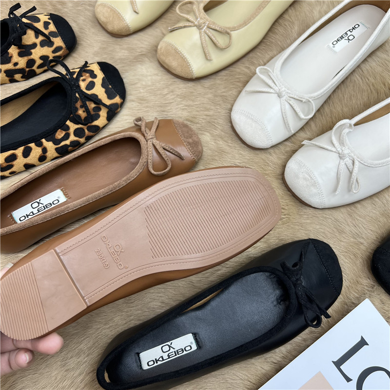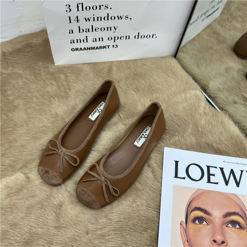 Женские балетки с бантом, 2025 г., универсальные темпераментные рабочие туфли «Фея», мягкая кожа, туфли «бабушка» на низком каблуке с мелким носком