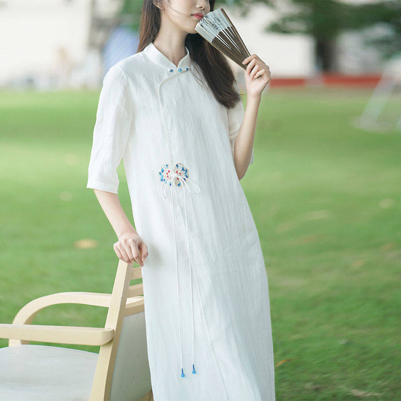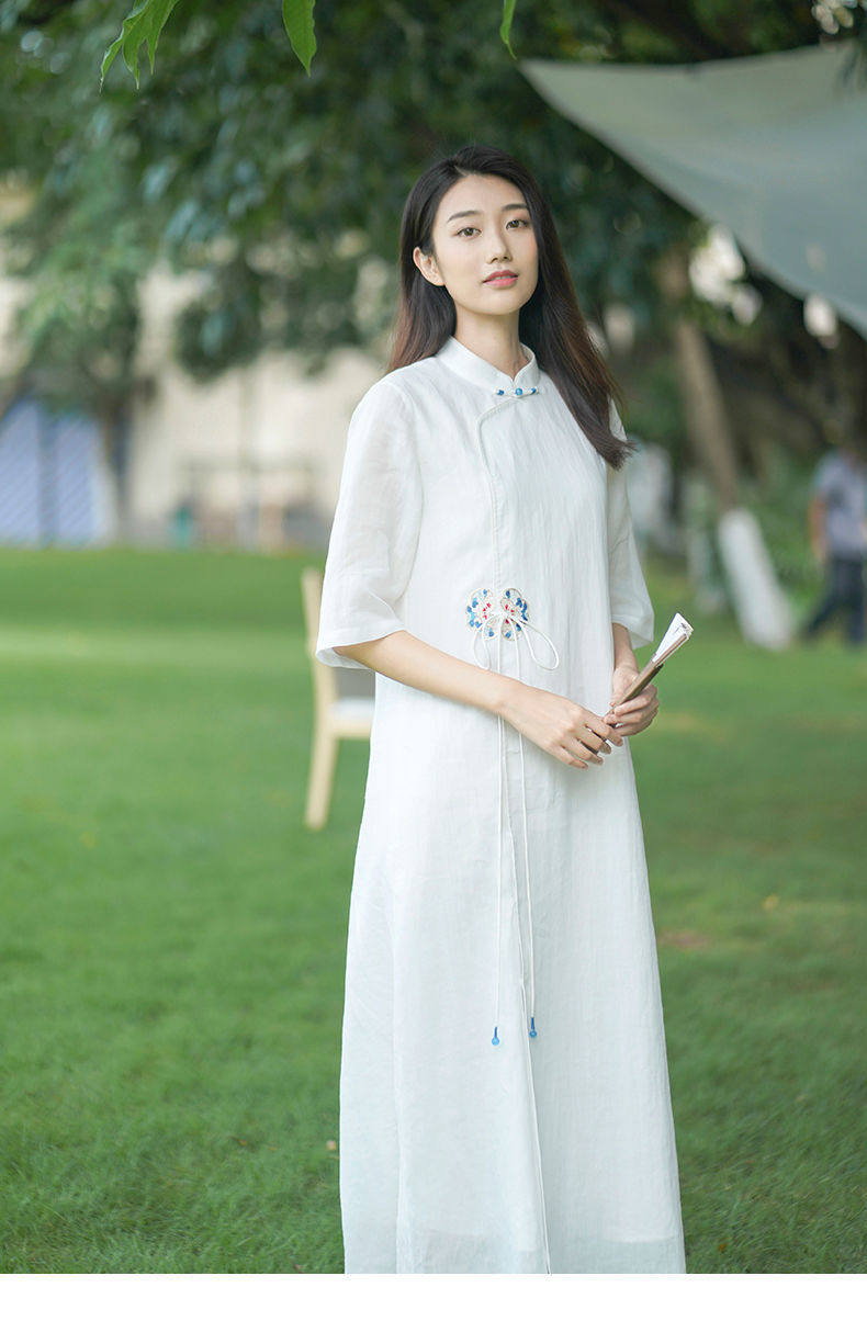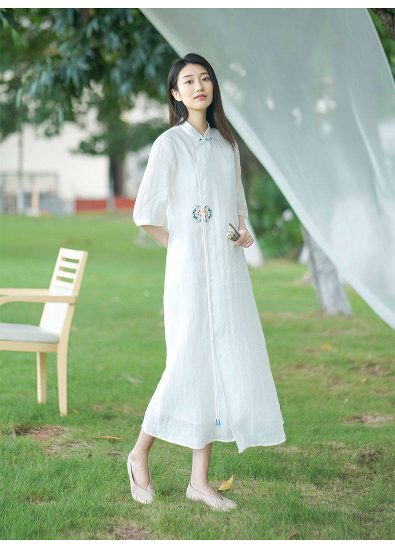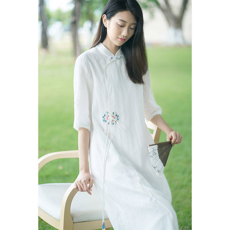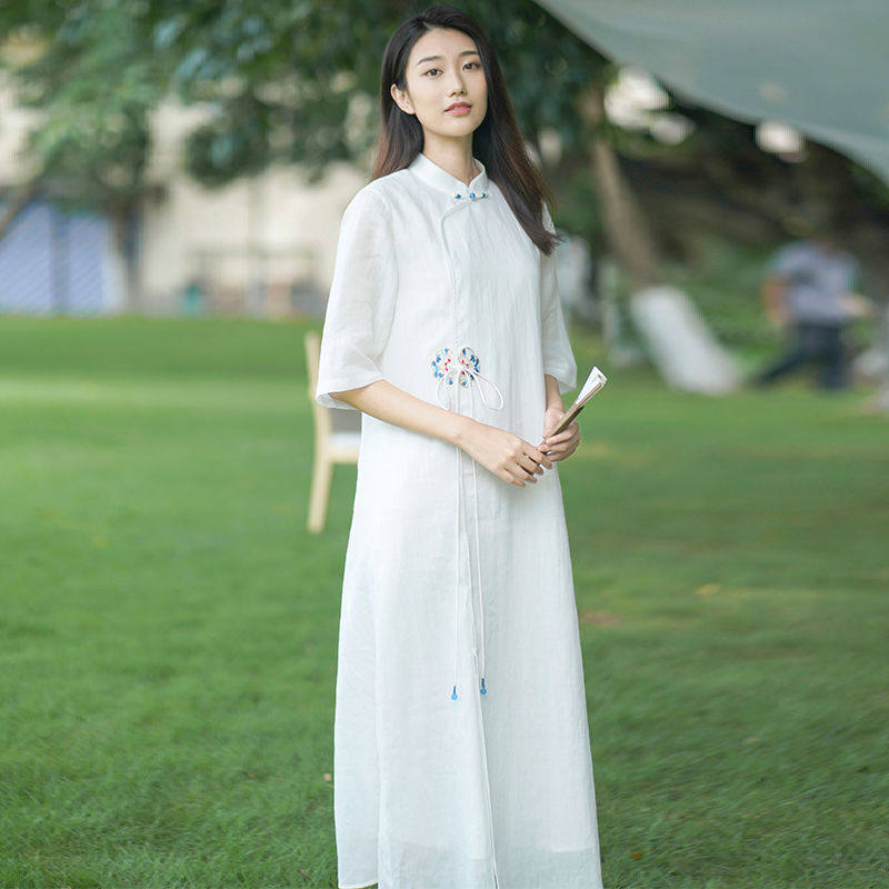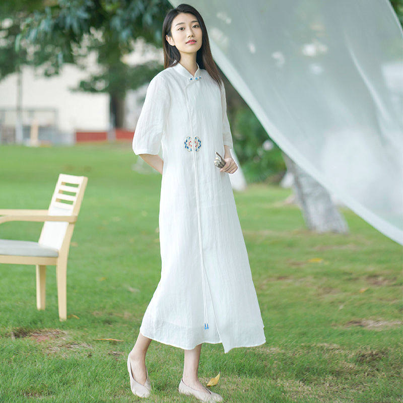 Летнее этническое белое длинное платье, сезон 2021, этнический стиль, китайский стиль