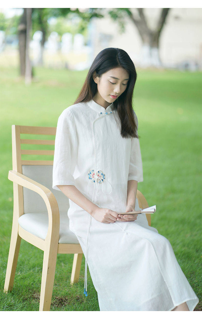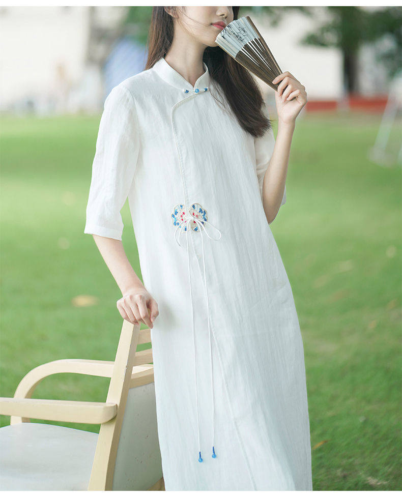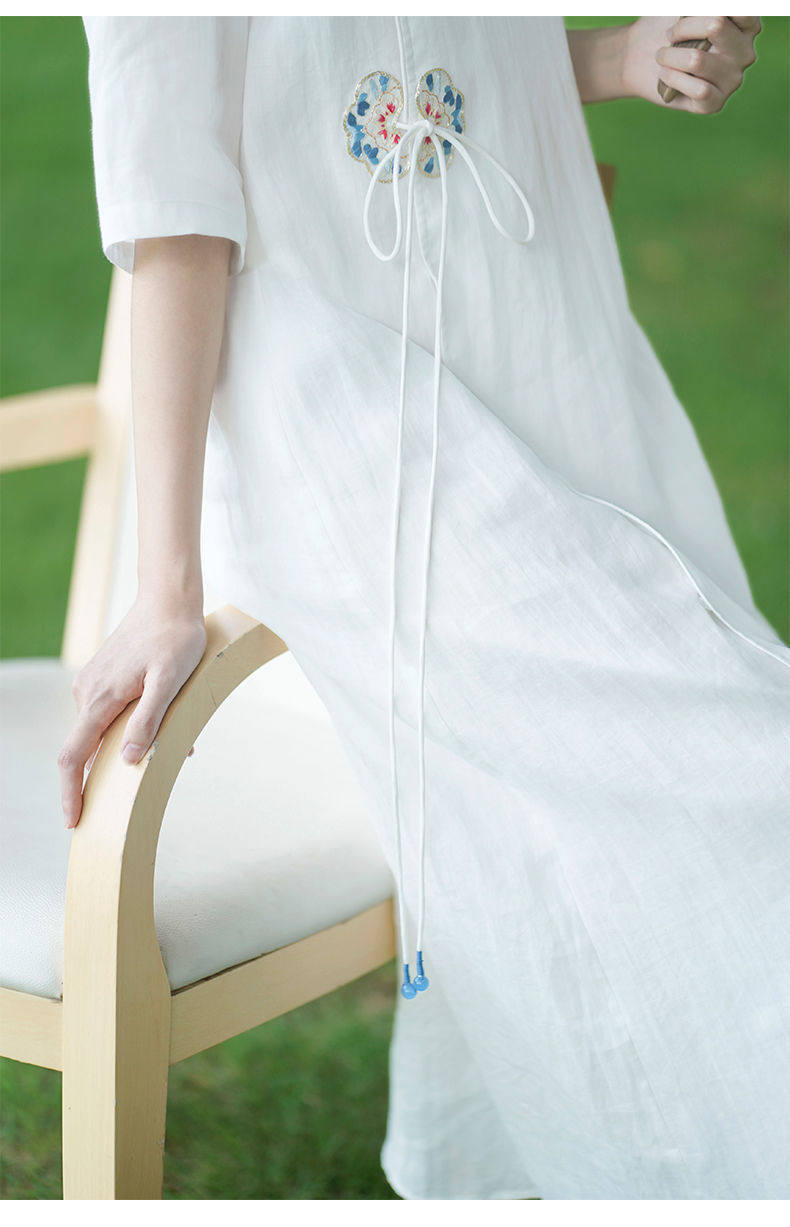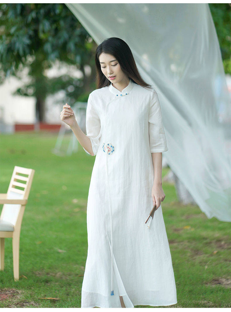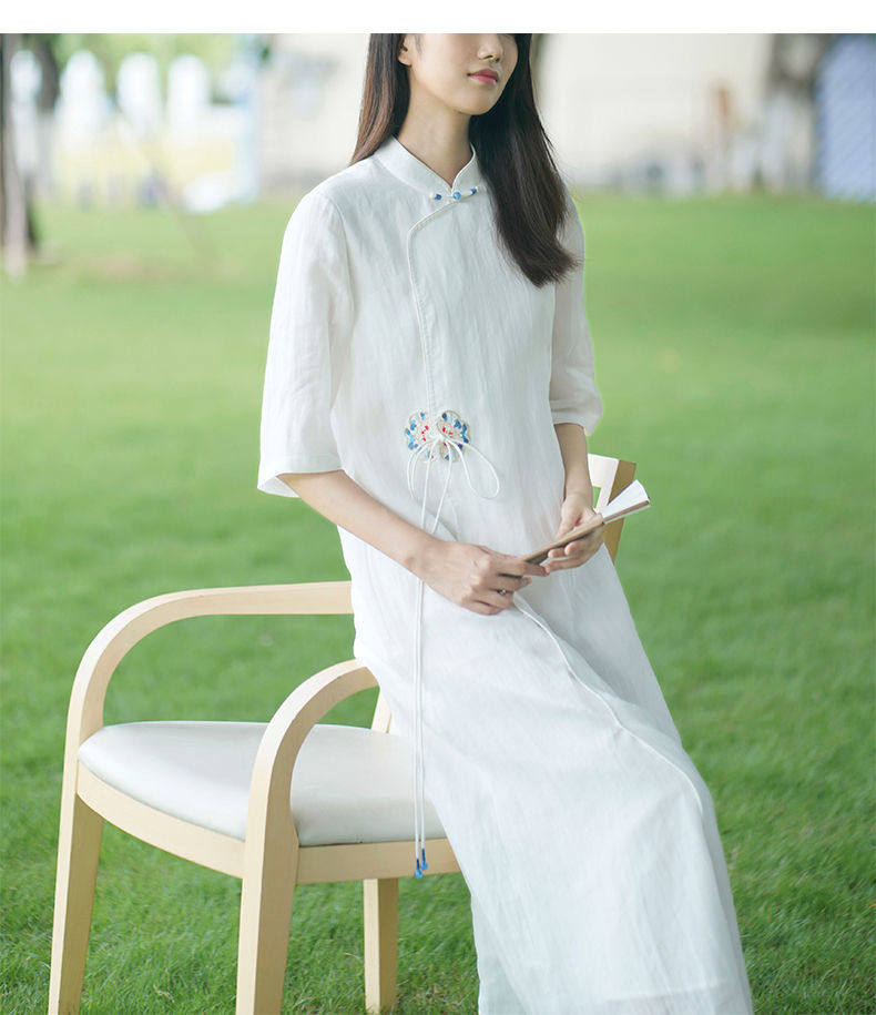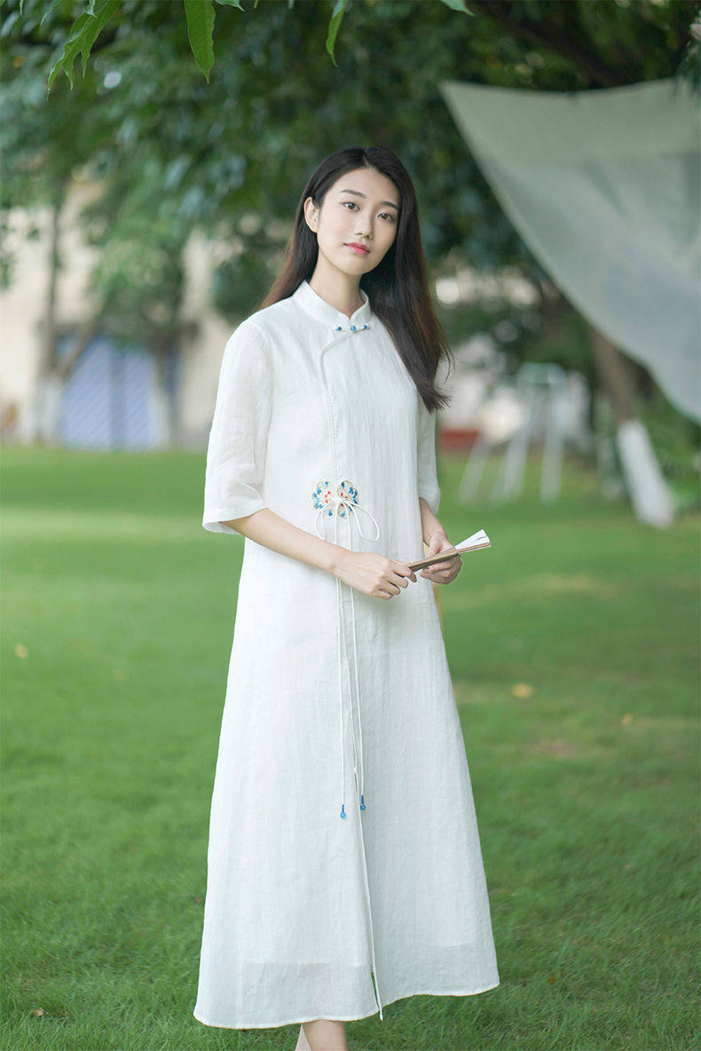 Летнее этническое белое длинное платье, сезон 2021, этнический стиль, китайский стиль