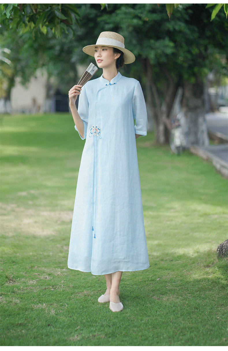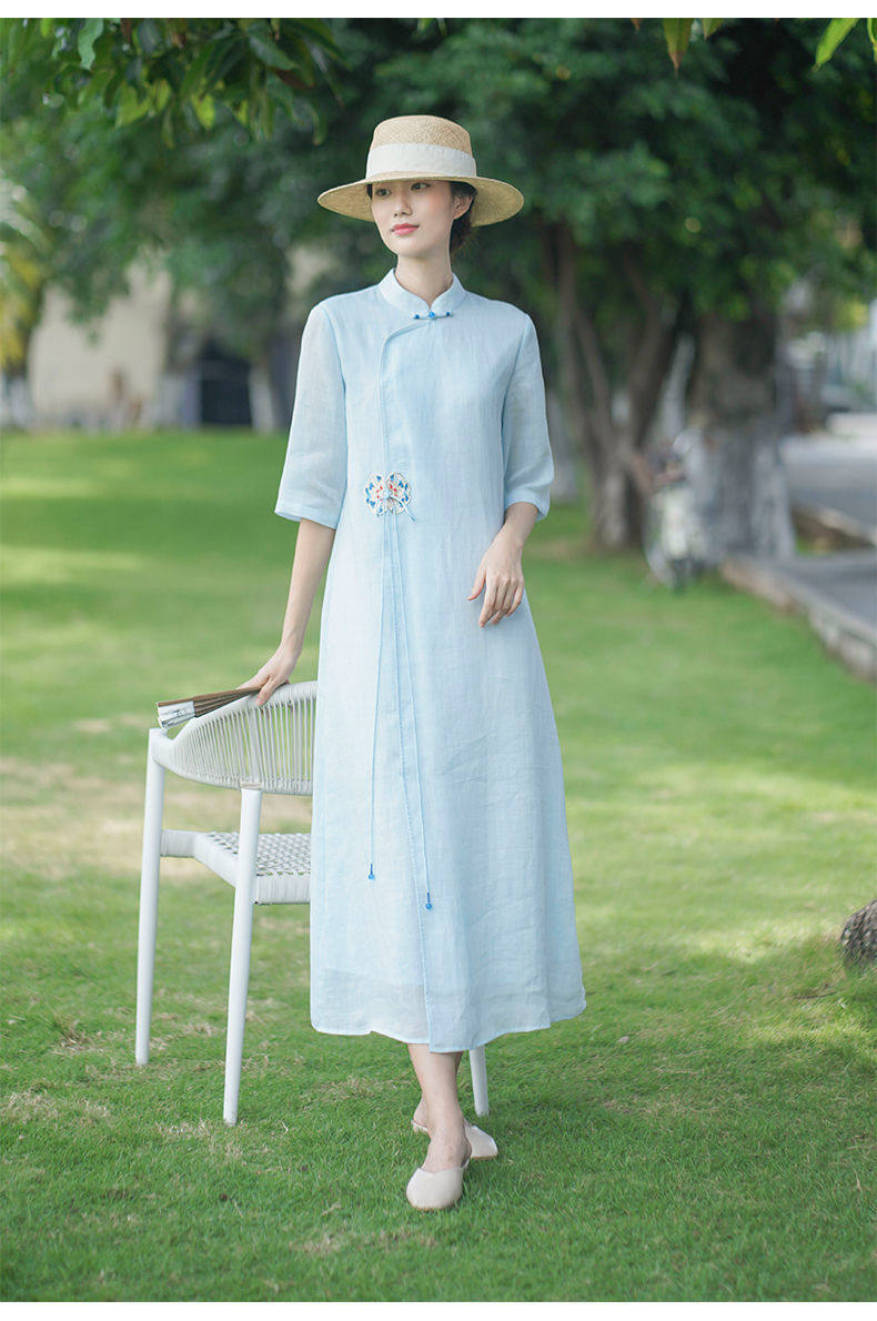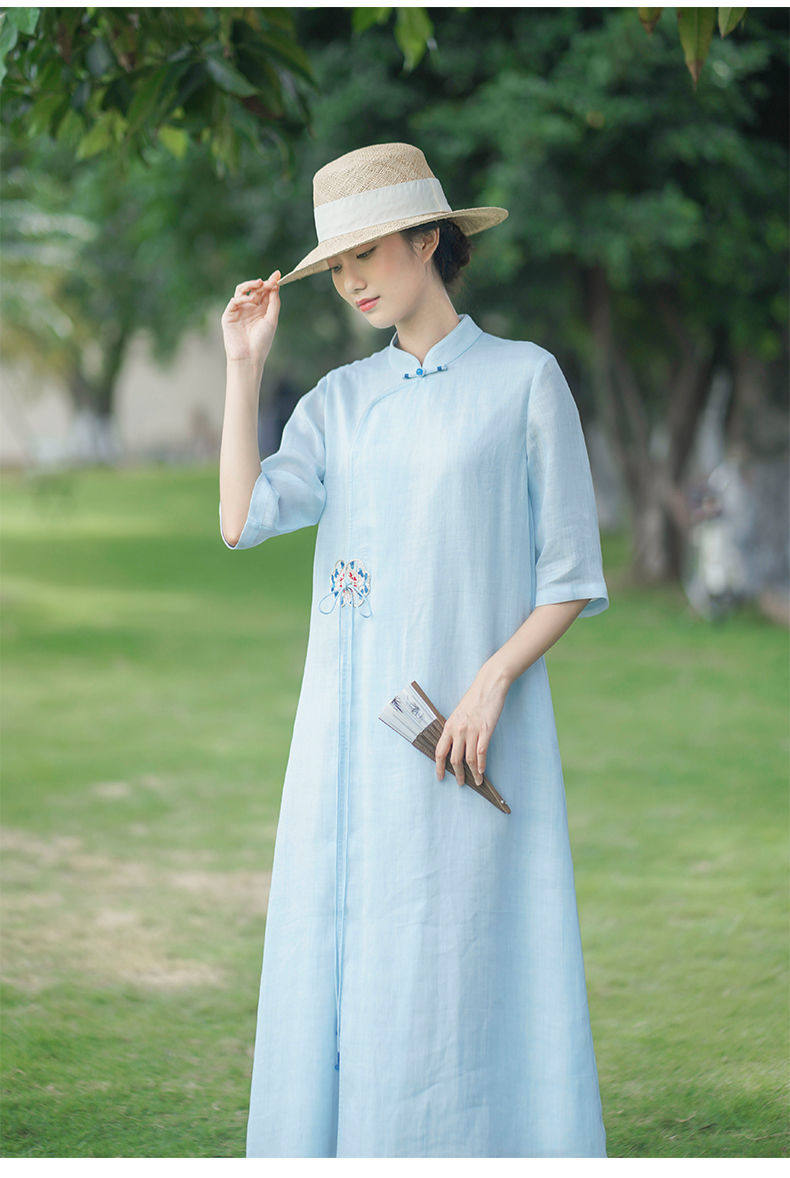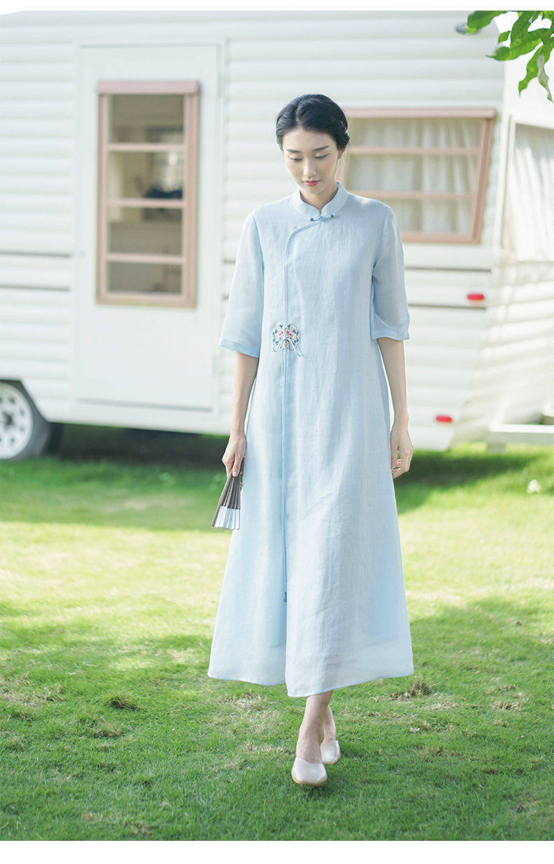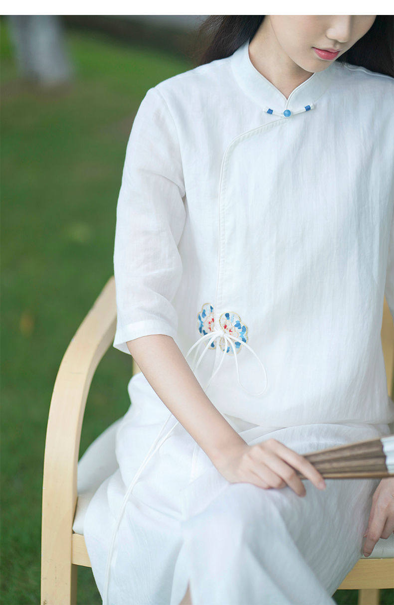 Летнее этническое белое длинное платье, сезон 2021, этнический стиль, китайский стиль