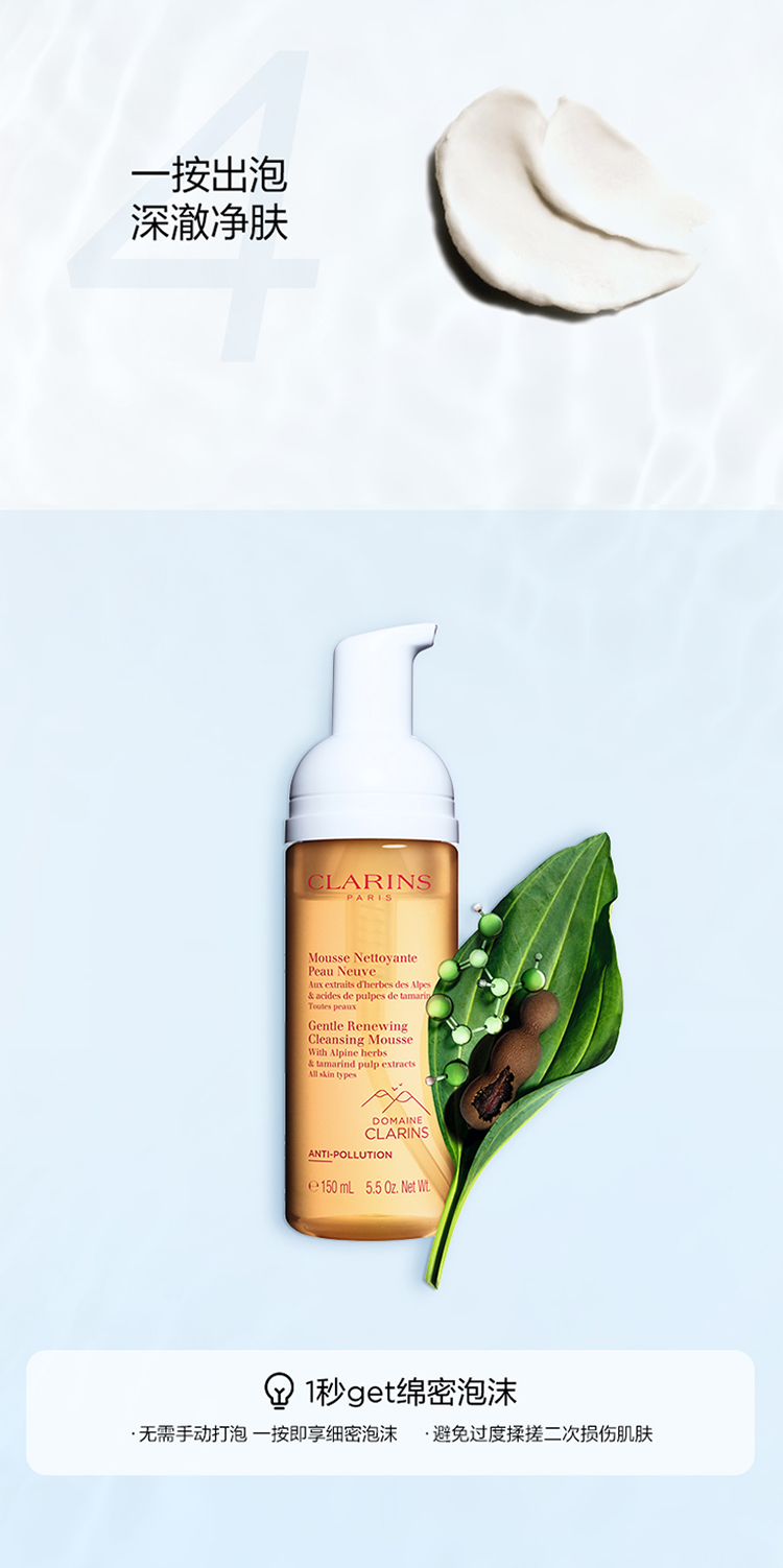 Clarins, мягкое омолаживающее очищающее молочко, мягкий мусс на основе аминокислот, 150 мл, бережная очистка