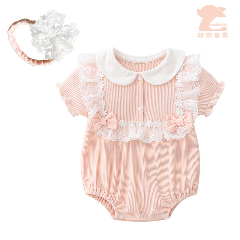 Летнее кружевное детское боди для новорожденных для девочек, детская одежда, короткий рукав