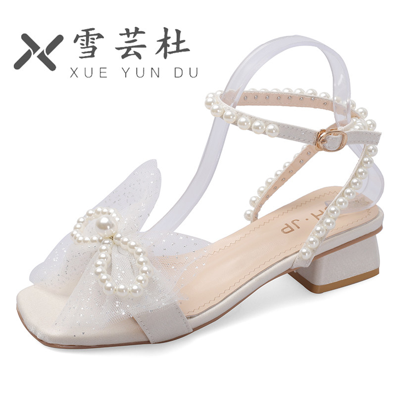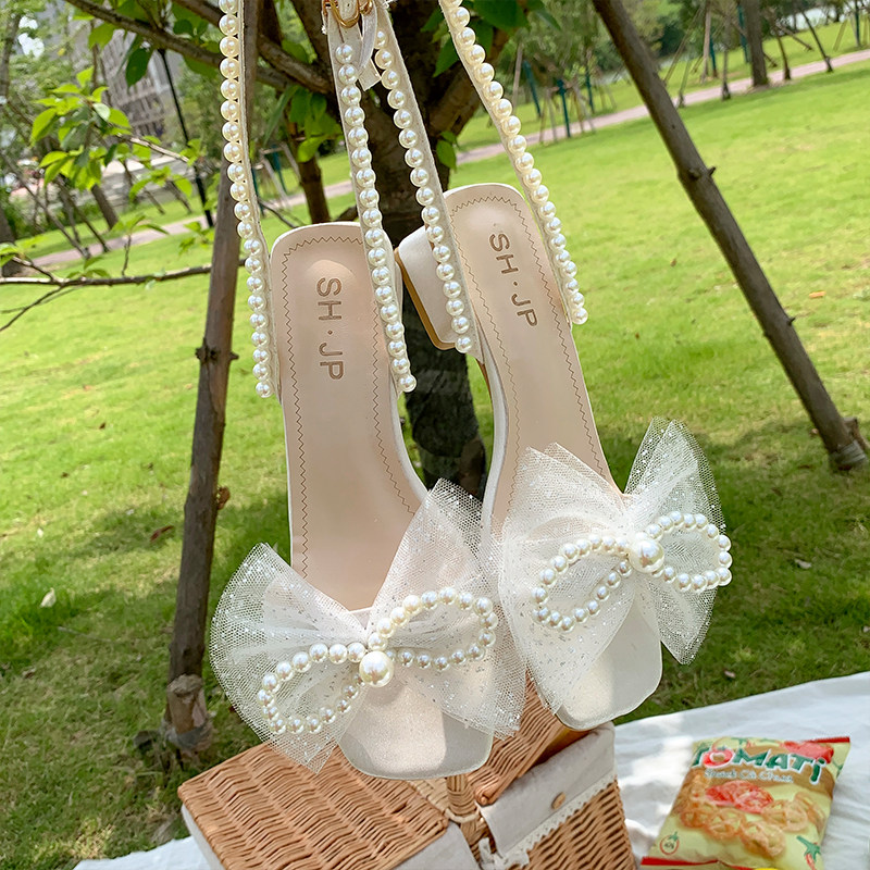 Сандалии, летняя универсальная сетчатая обувь с бантиком на каблуке, 2021 года