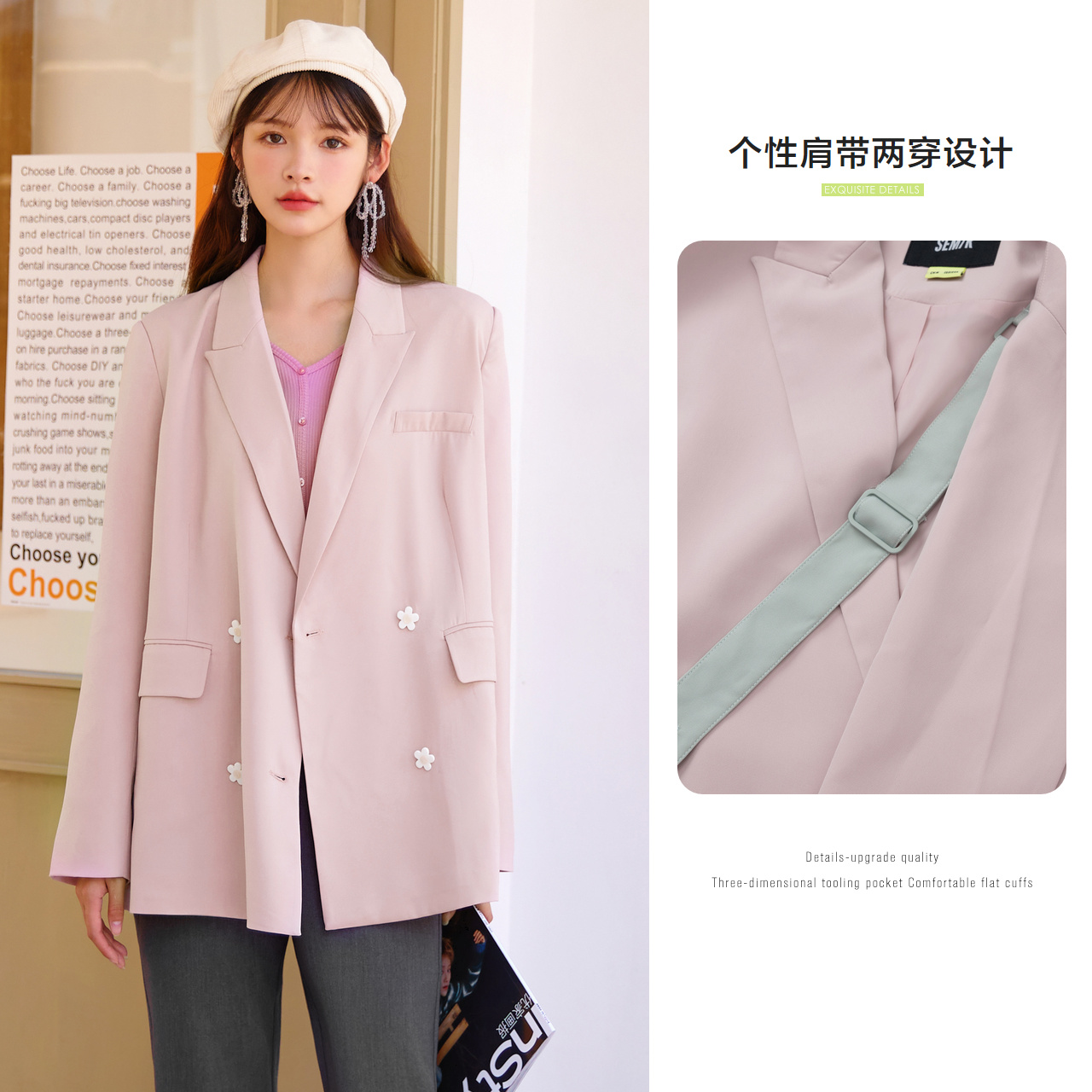 Semir, дизайнерский сиреневый пиджак классического кроя в форме цветка, тренд сезона, коллекция 2021, осенний, по фигуре, свободный крой