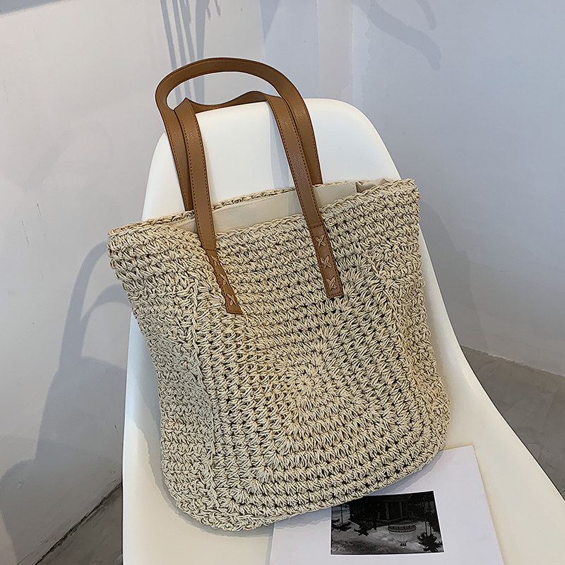 Соломенная вместительная и большая универсальная брендовая сумка на одно плечо, популярно в интернете