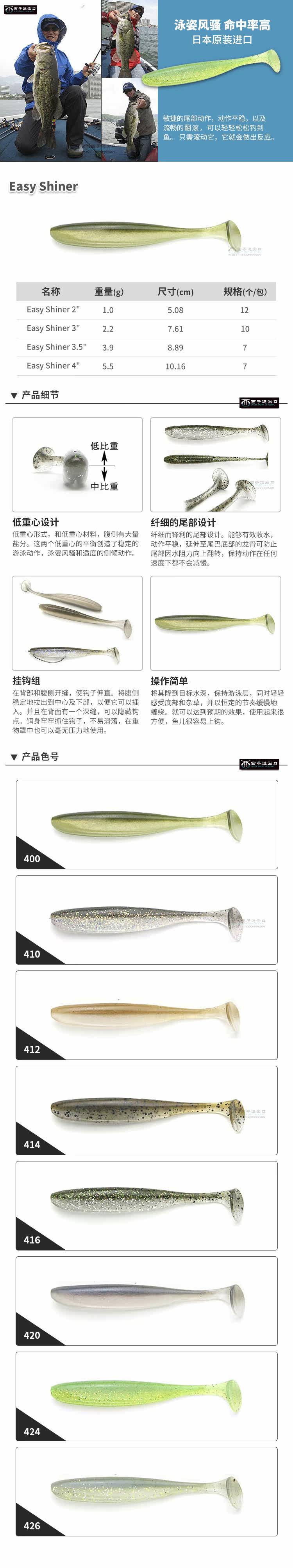 Япония импортированная Keitech Luya мягкая приманка Easy Shiner Soft Worm k бренд хвост рыба черная яма бас -бас.