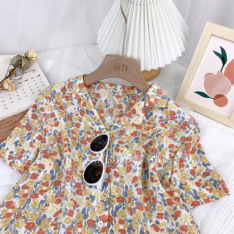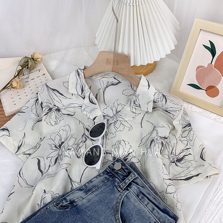 Японская шифоновая короткая дизайнерская рубашка для отдыха, свободный крой, тренд сезона