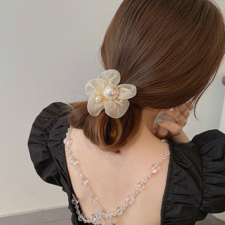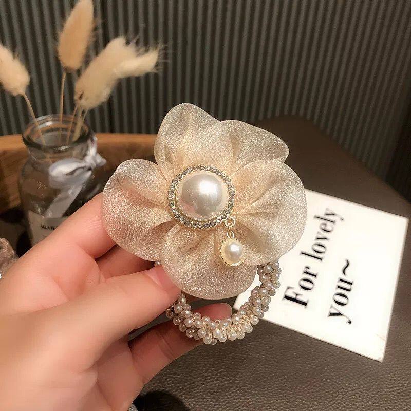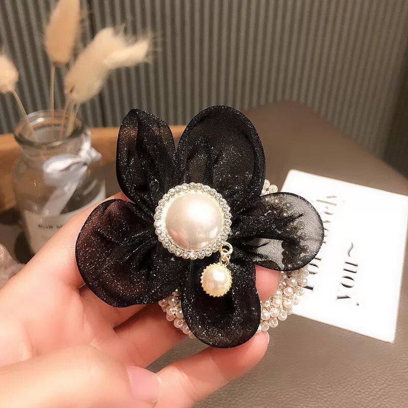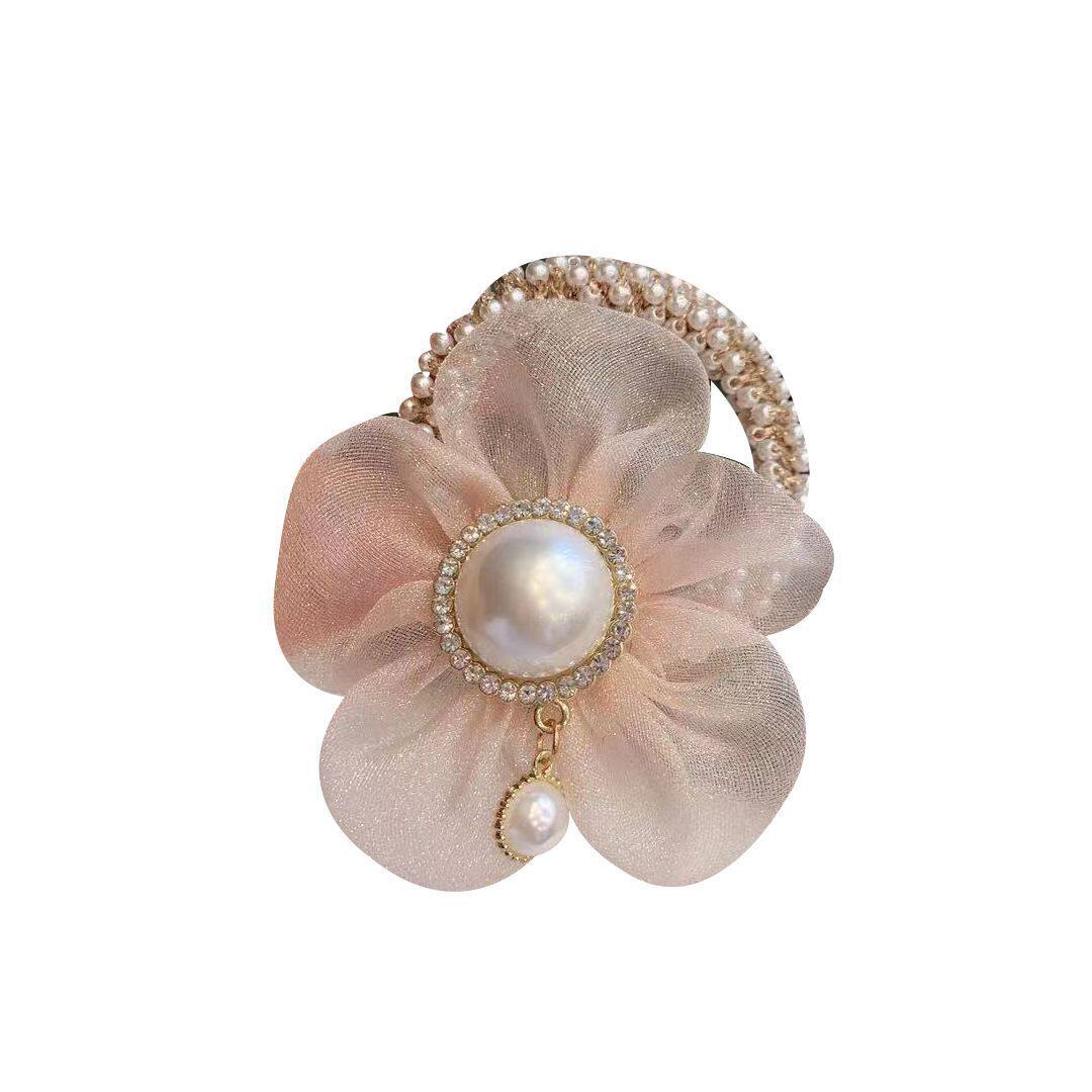 Аксессуар для волос из жемчуга на солнечной энергии, резинка для волос, легкий роскошный стиль, в цветочек, яркий броский стиль, изысканный стиль, популярно в интернете