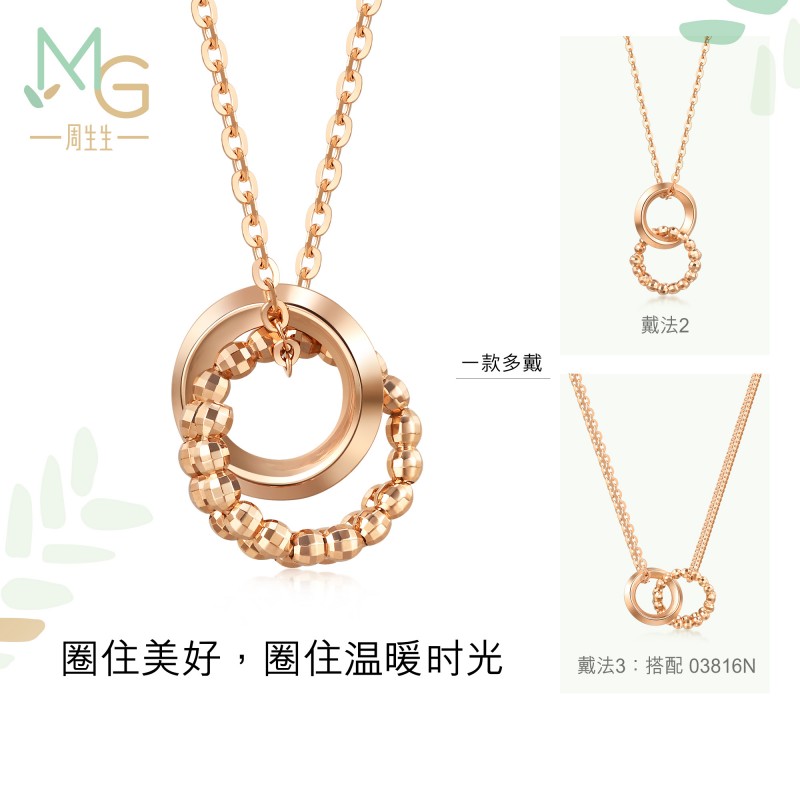 周生生 Золотое мятное кольцо, ожерелье, 18 карат, розовое золото