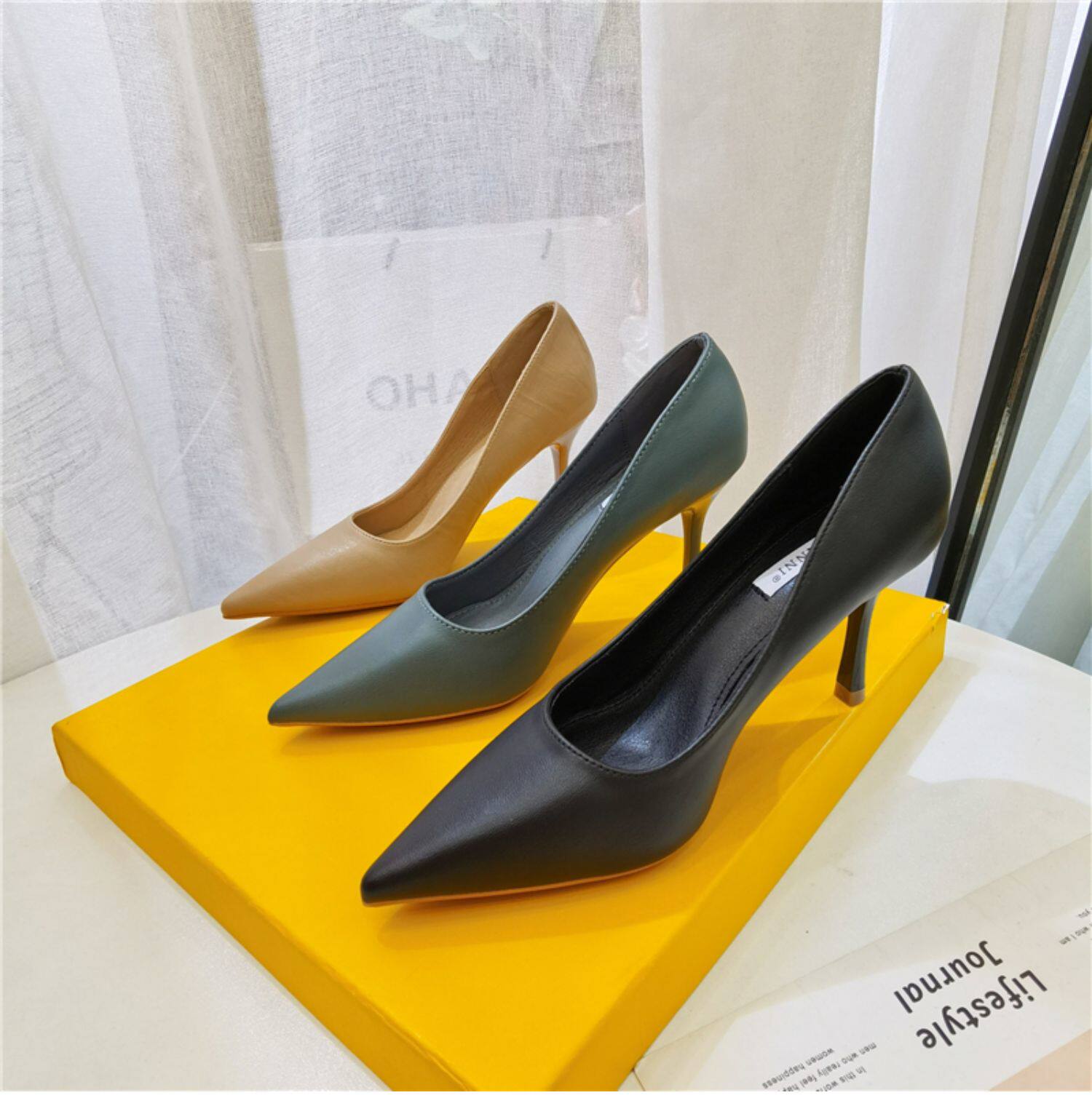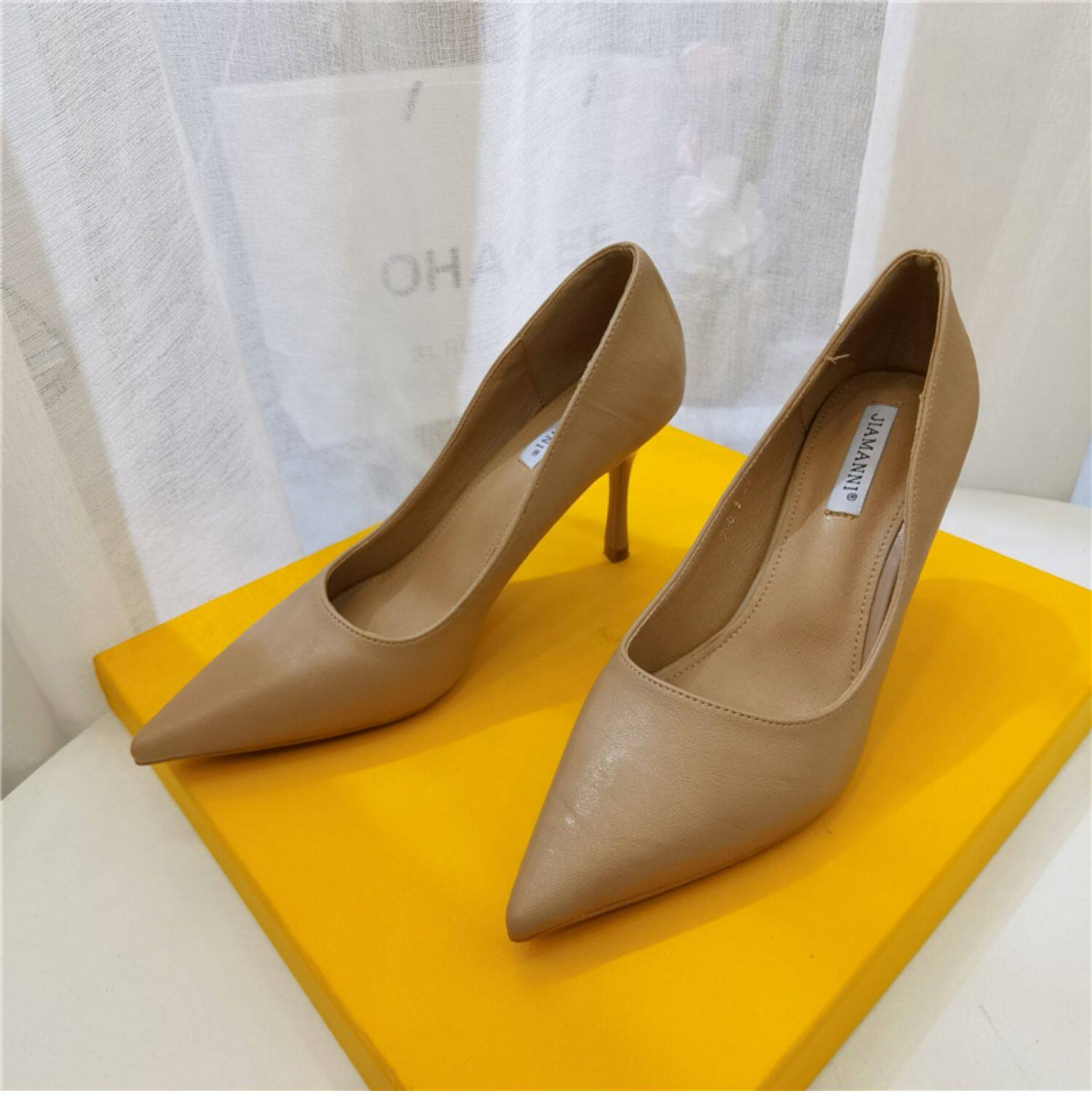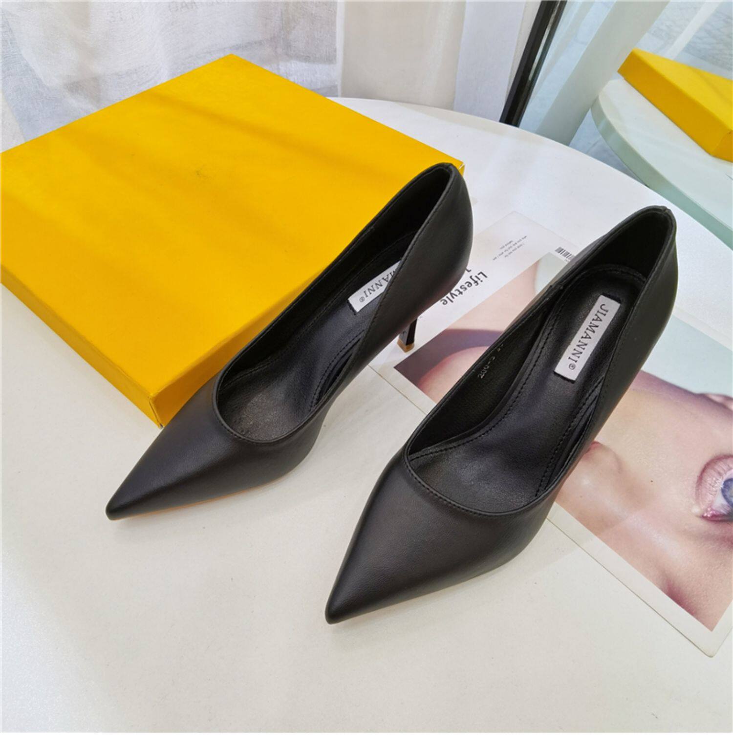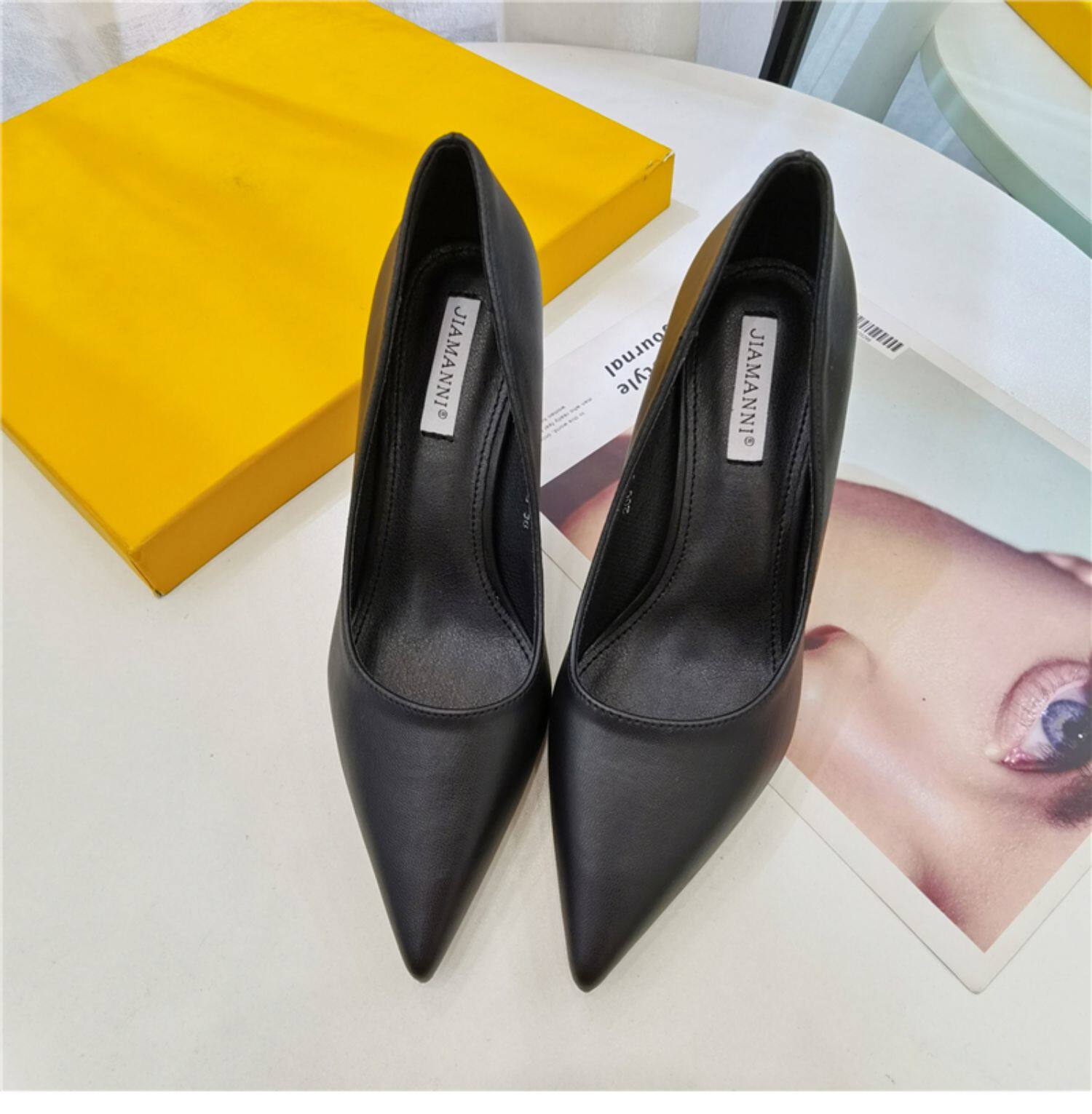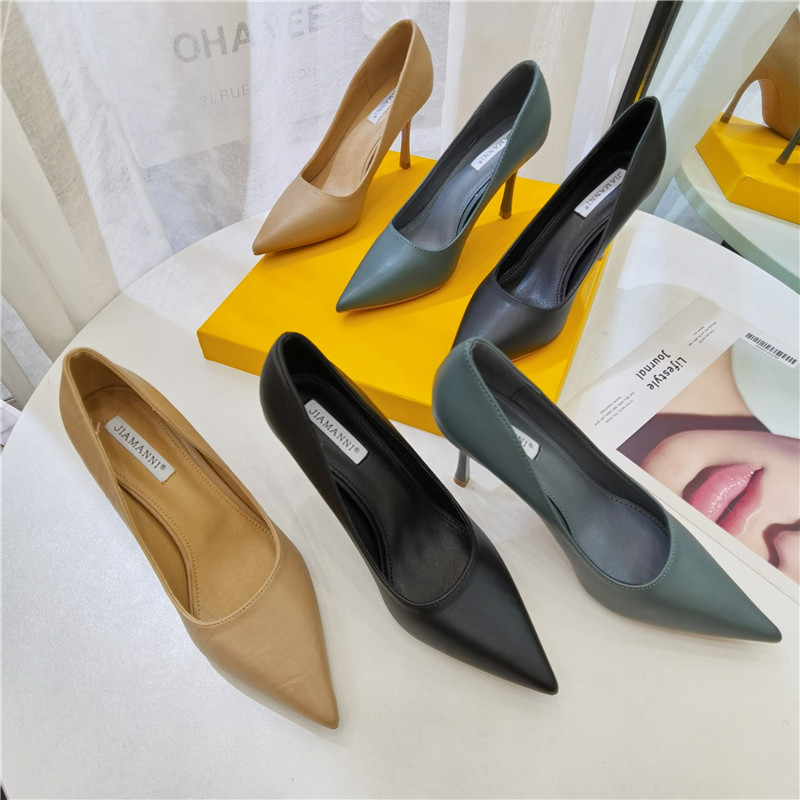 Темпераментные женские туфли на высоком каблуке на шпильке, весенне-осенний сезон 2024, новый стиль, универсальные профессиональные рабочие туфли из мягкой кожи с острым носком, профессиональная рабочая обувь для женщин