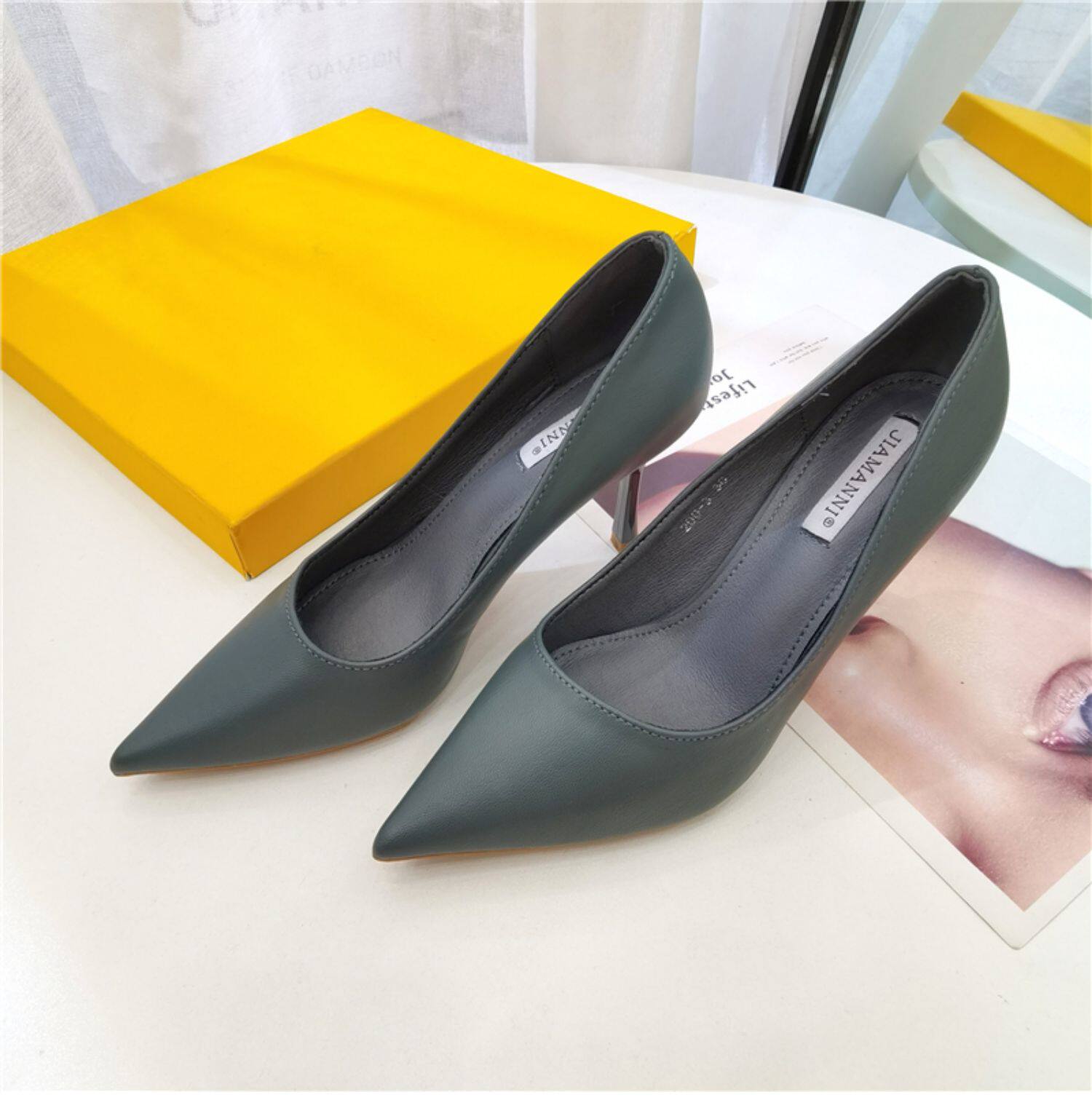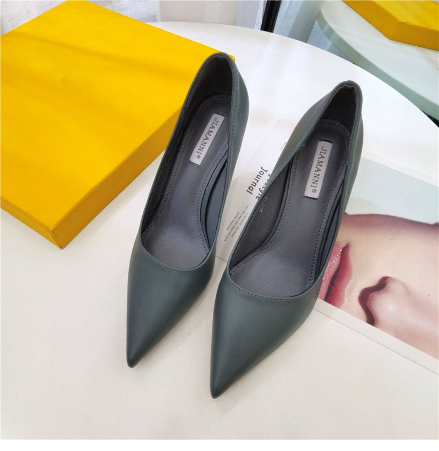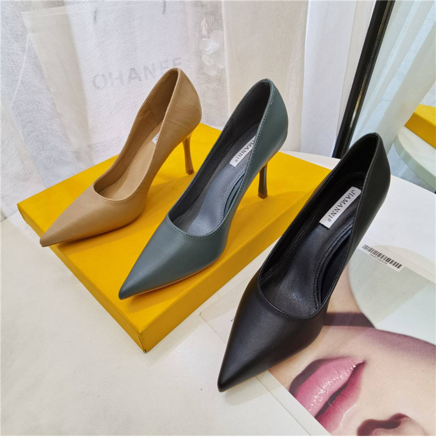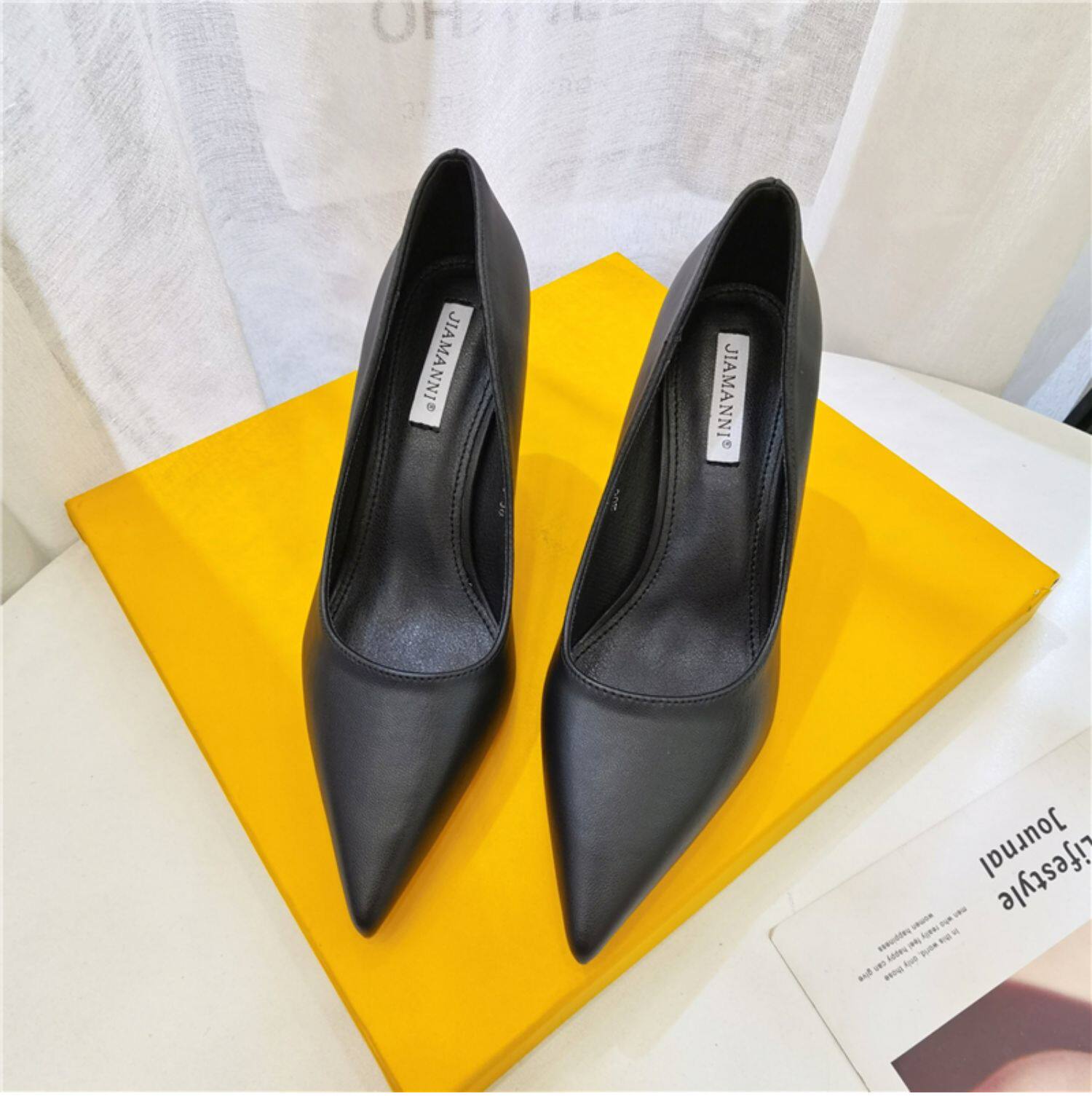Темпераментные женские туфли на высоком каблуке на шпильке, весенне-осенний сезон 2024, новый стиль, универсальные профессиональные рабочие туфли из мягкой кожи с острым носком, профессиональная рабочая обувь для женщин