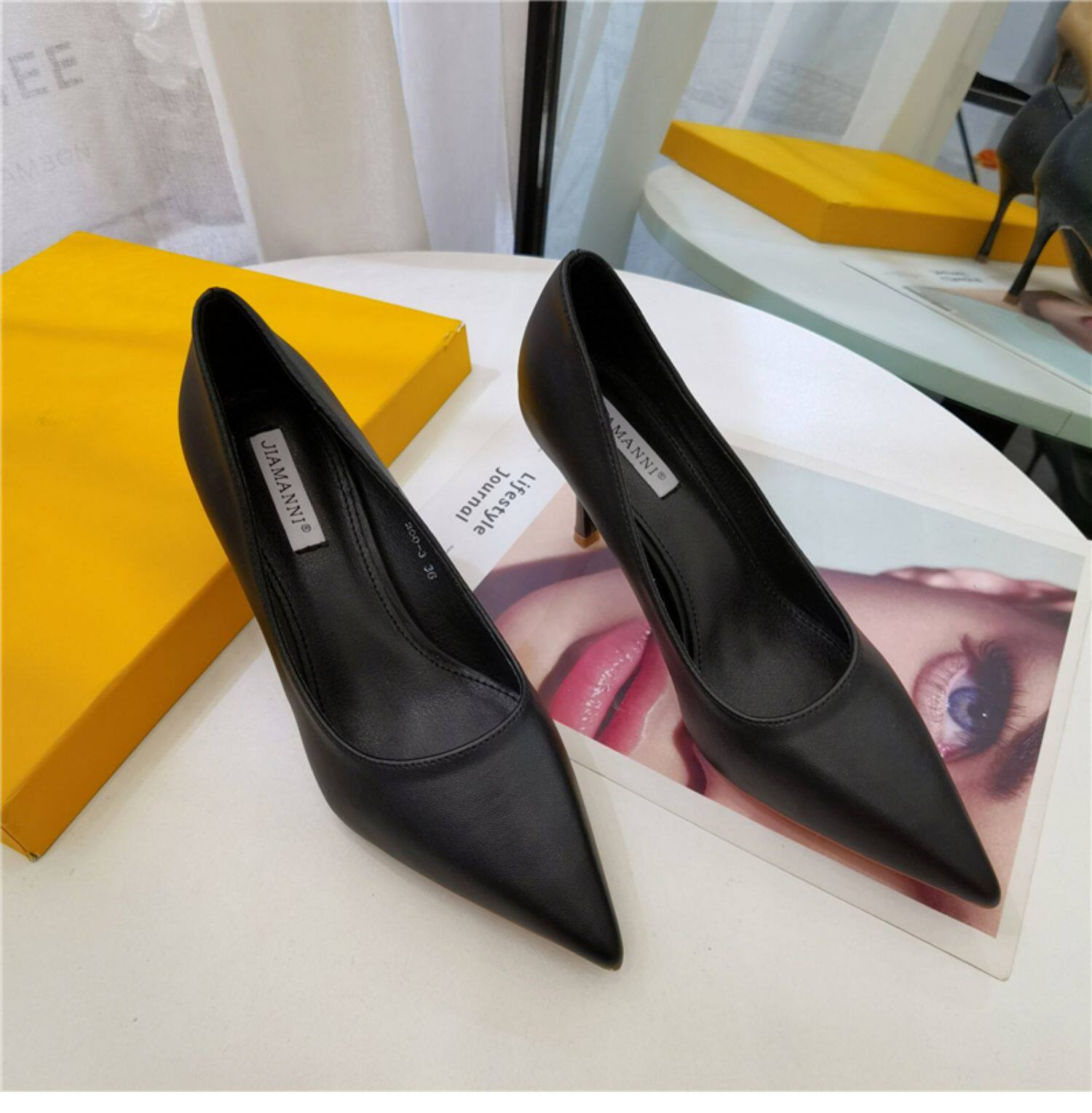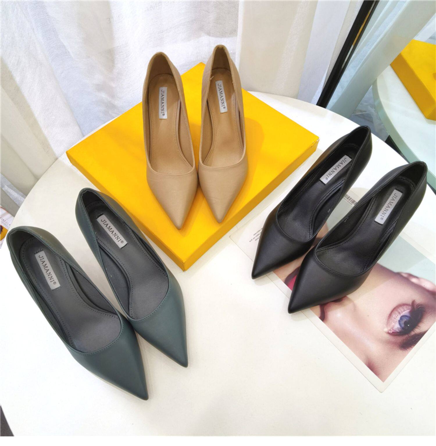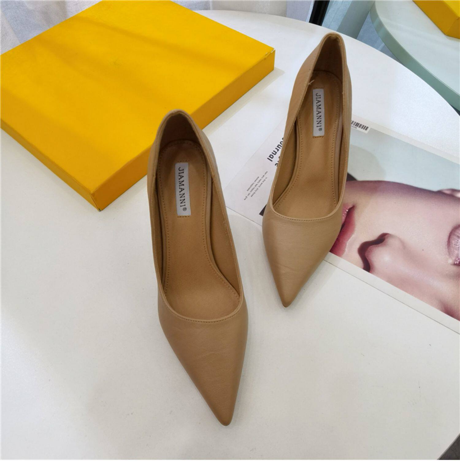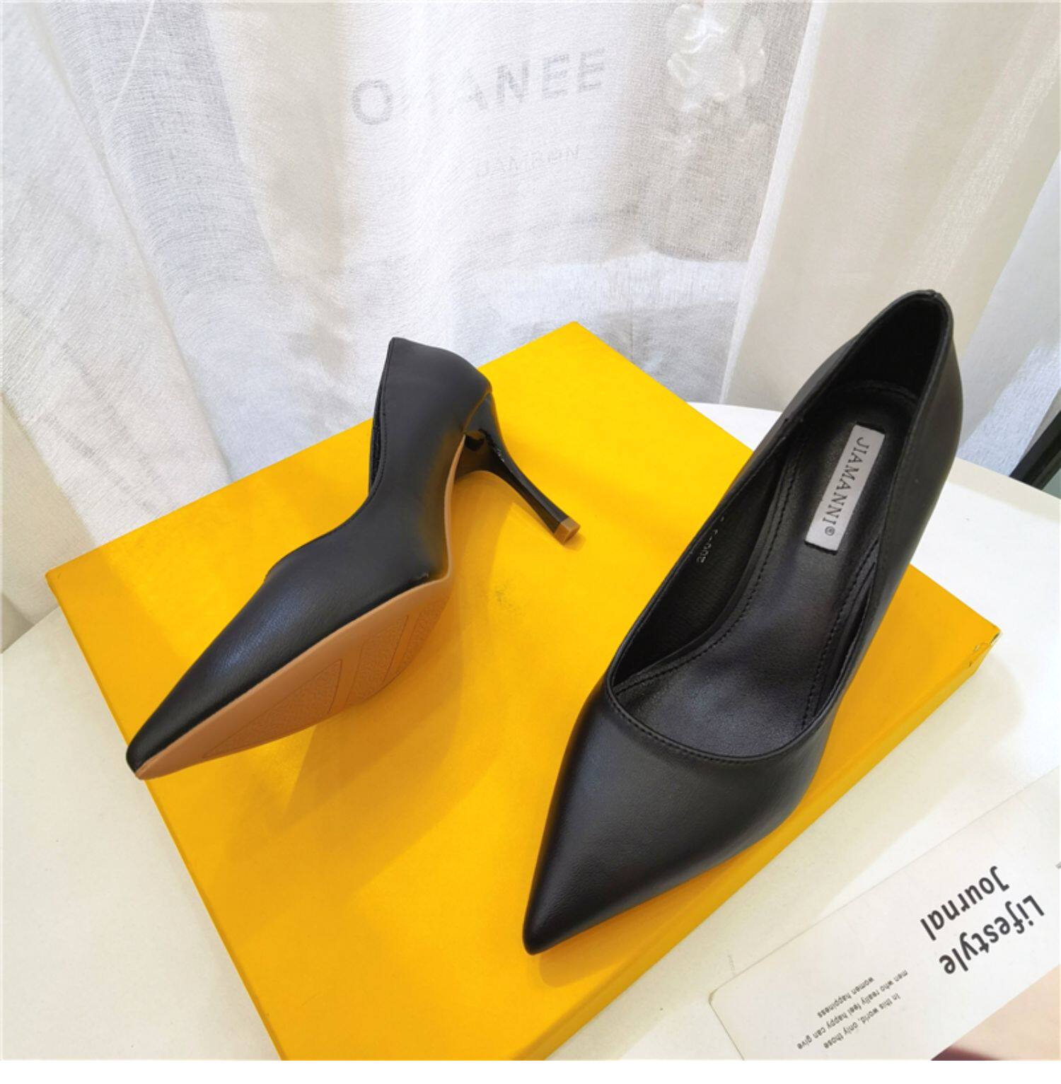 Темпераментные женские туфли на высоком каблуке на шпильке, весенне-осенний сезон 2024, новый стиль, универсальные профессиональные рабочие туфли из мягкой кожи с острым носком, профессиональная рабочая обувь для женщин